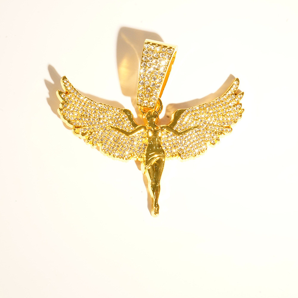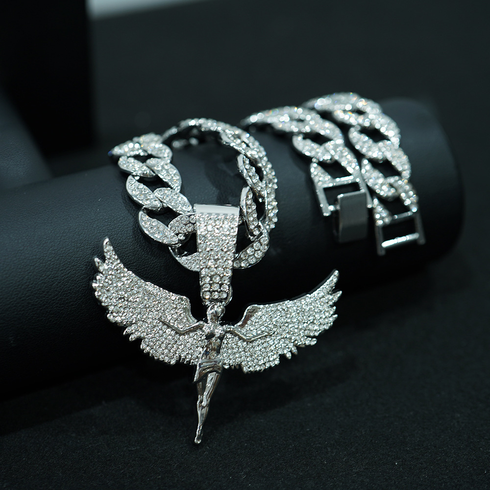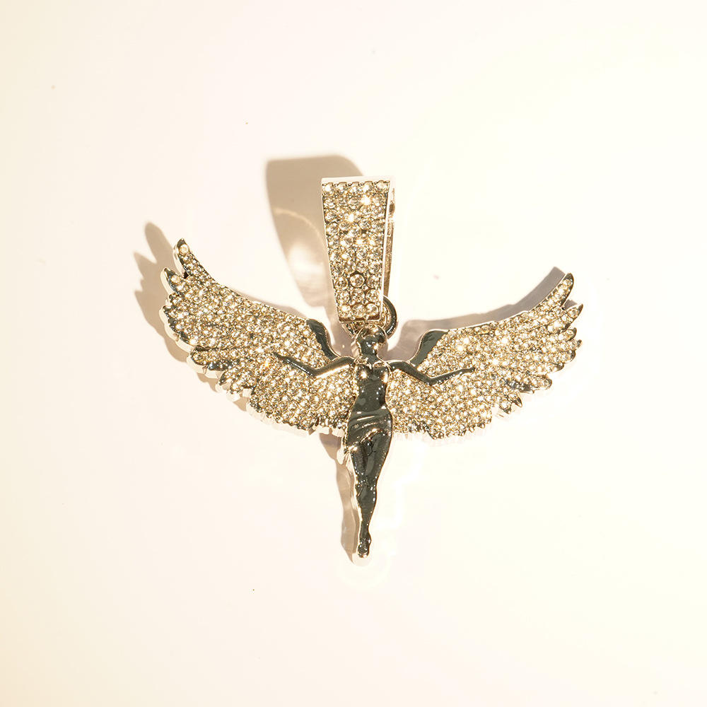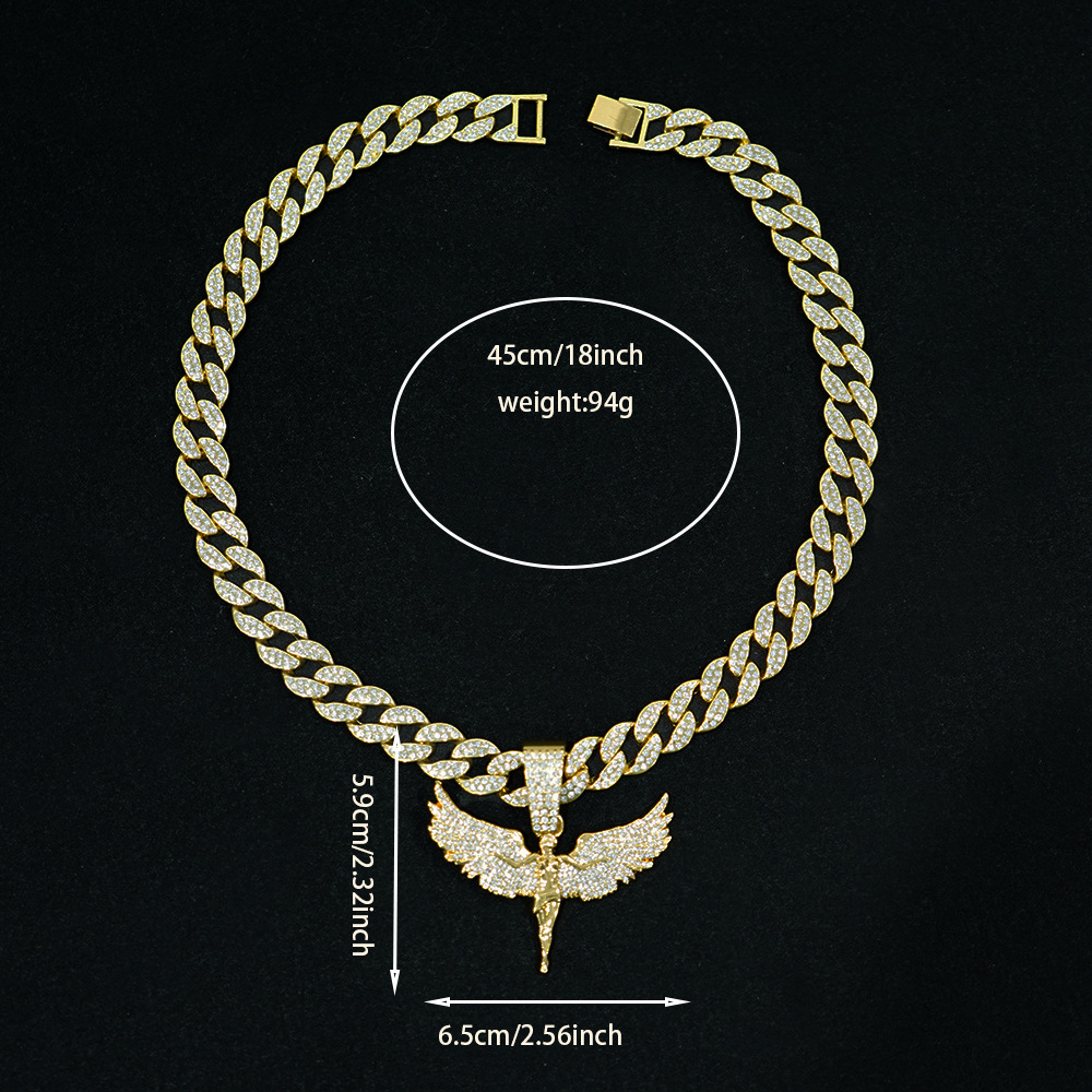 Europe and the United States cross-border goddess angel wings alloy pendant personality full diamond men and women rap with necklace manufacturers wholesale