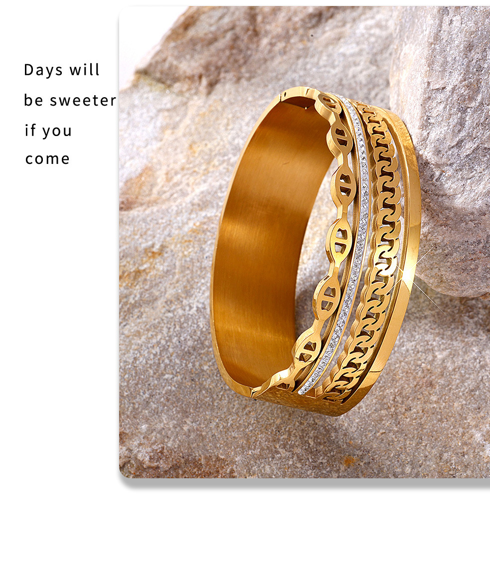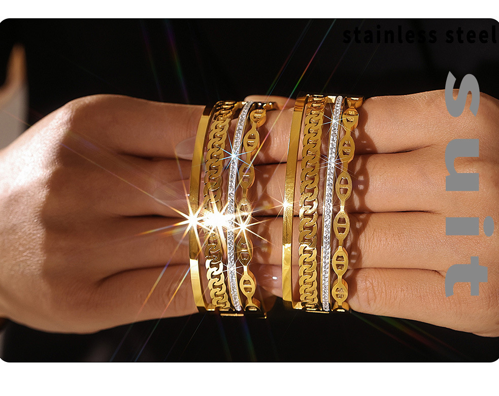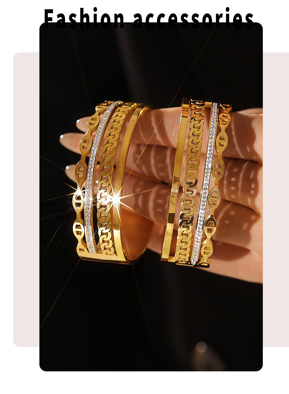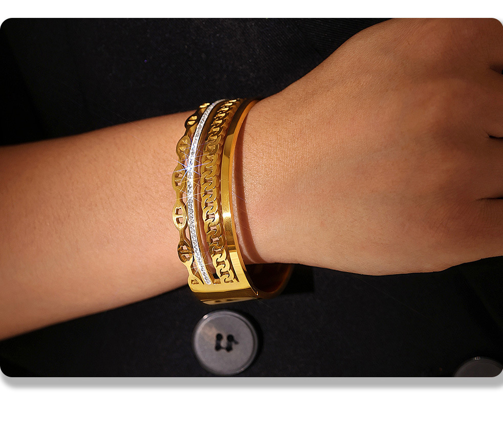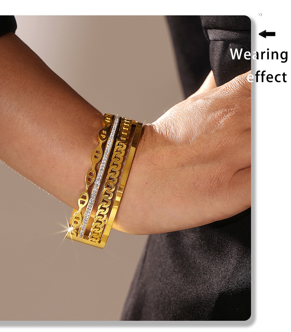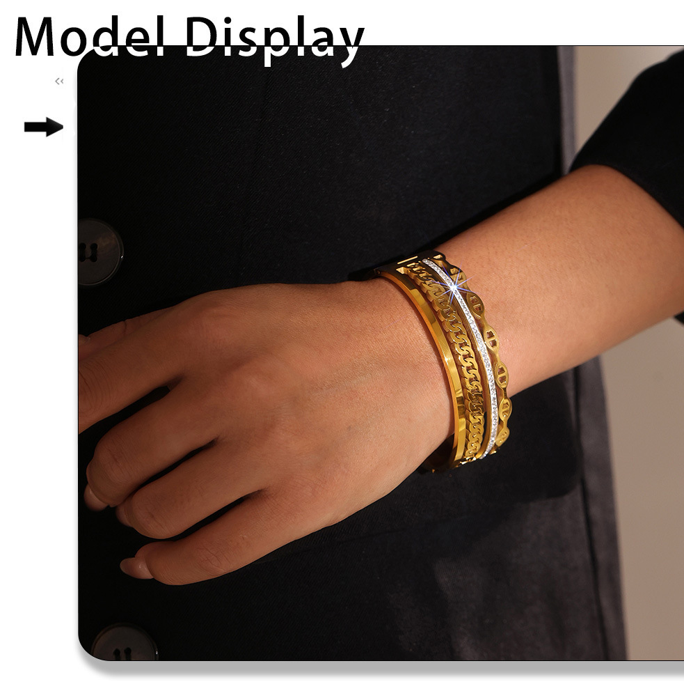 Dubai Hot Sale NK Chain Japanese Buckle Bracelet Sticky Diamond Exaggerated Light Luxury Titanium Steel Plated 18k Gold No Fell Bracelet