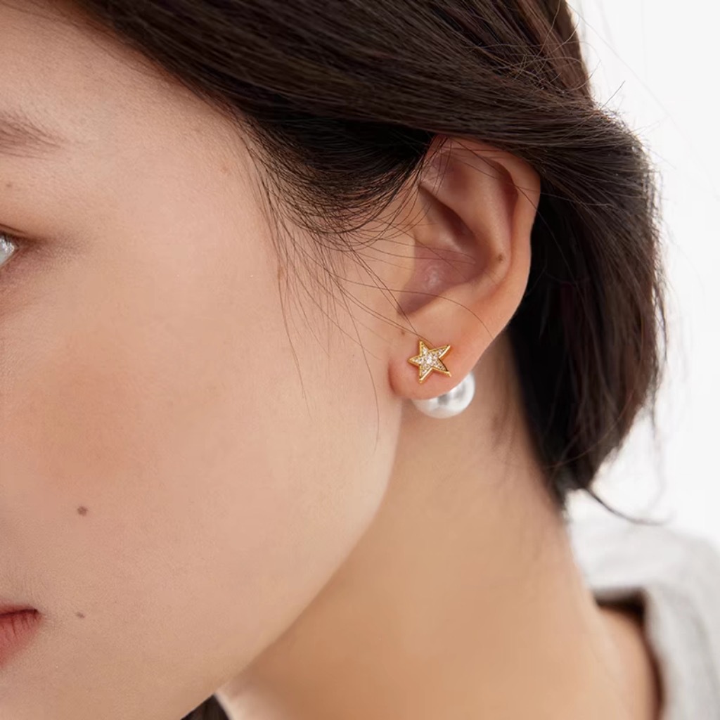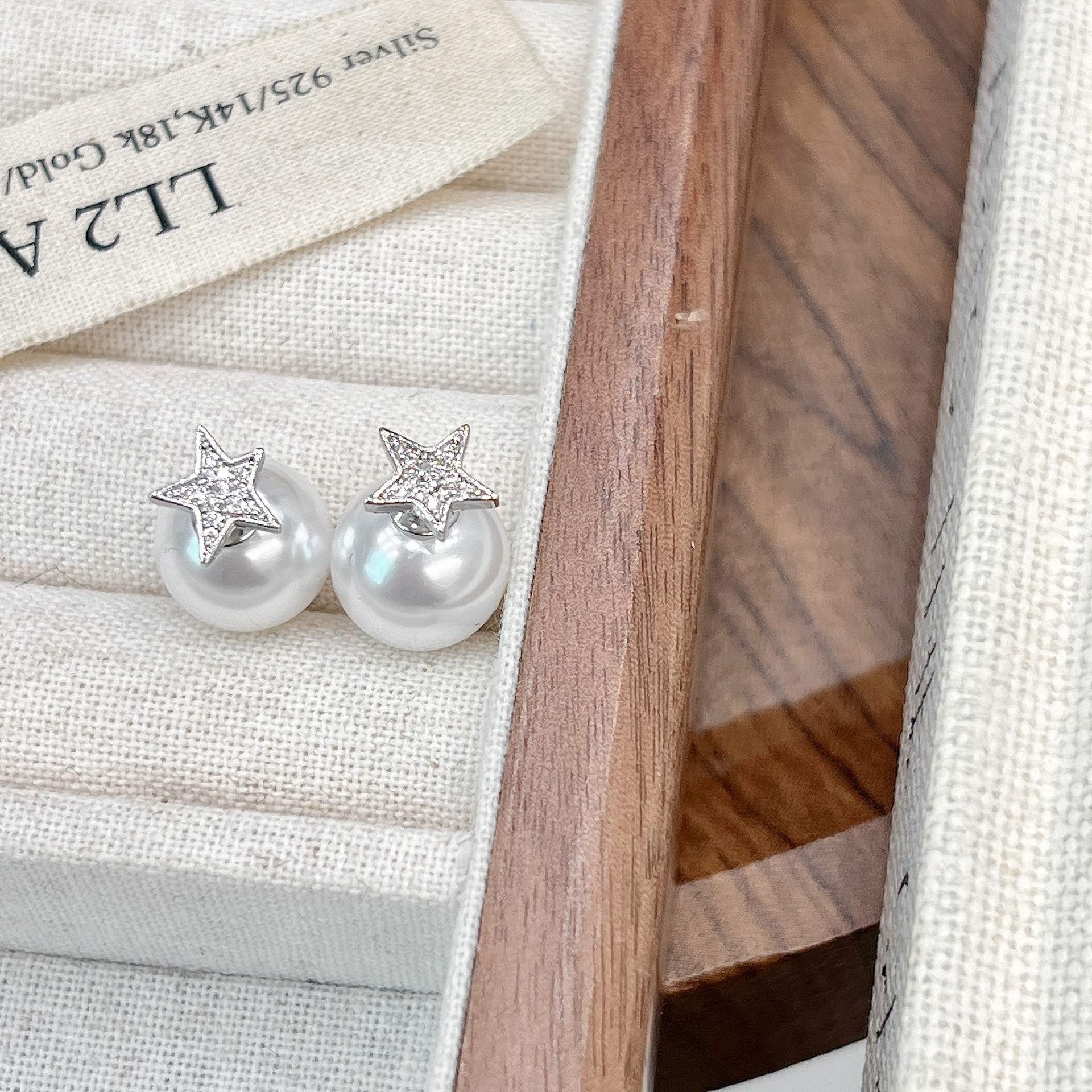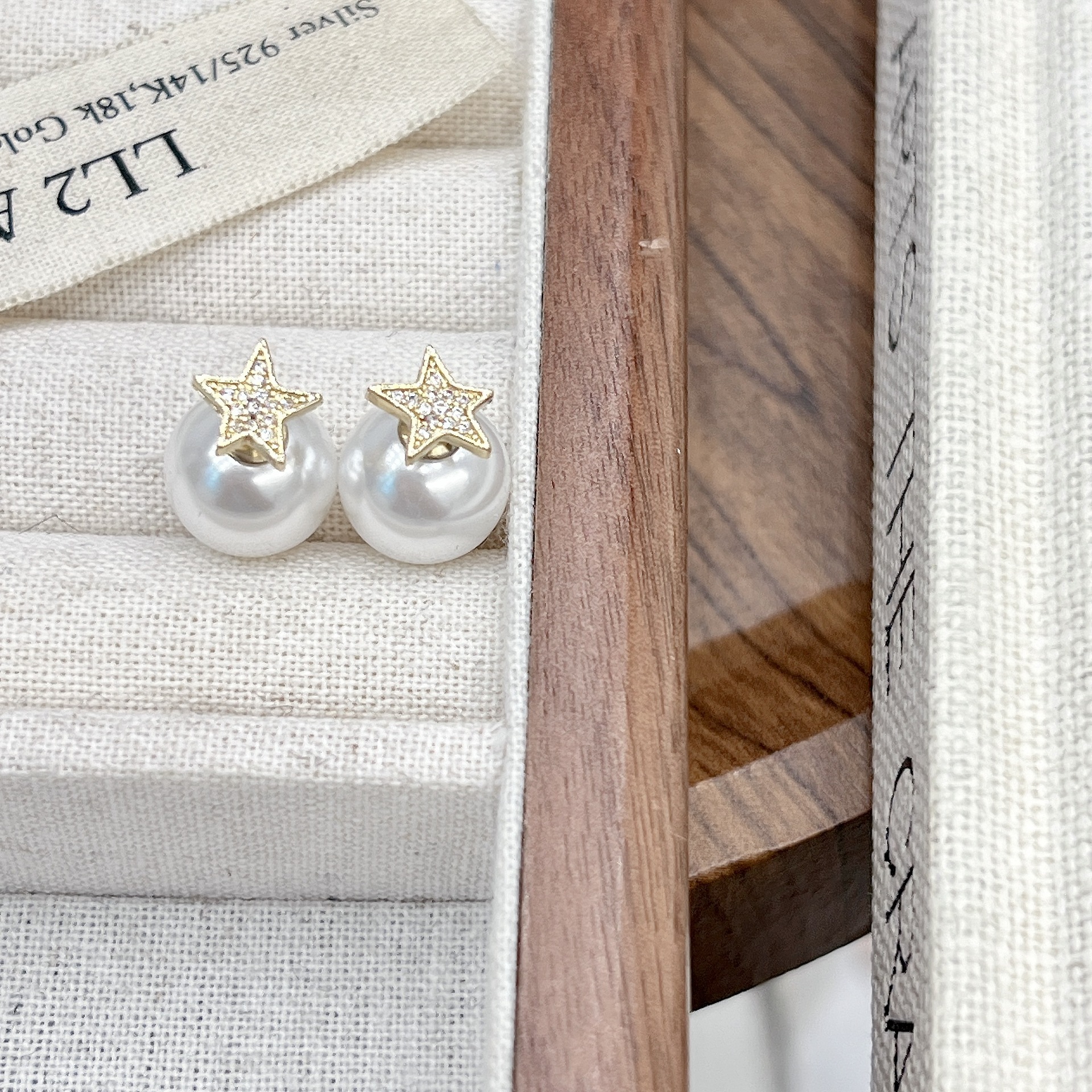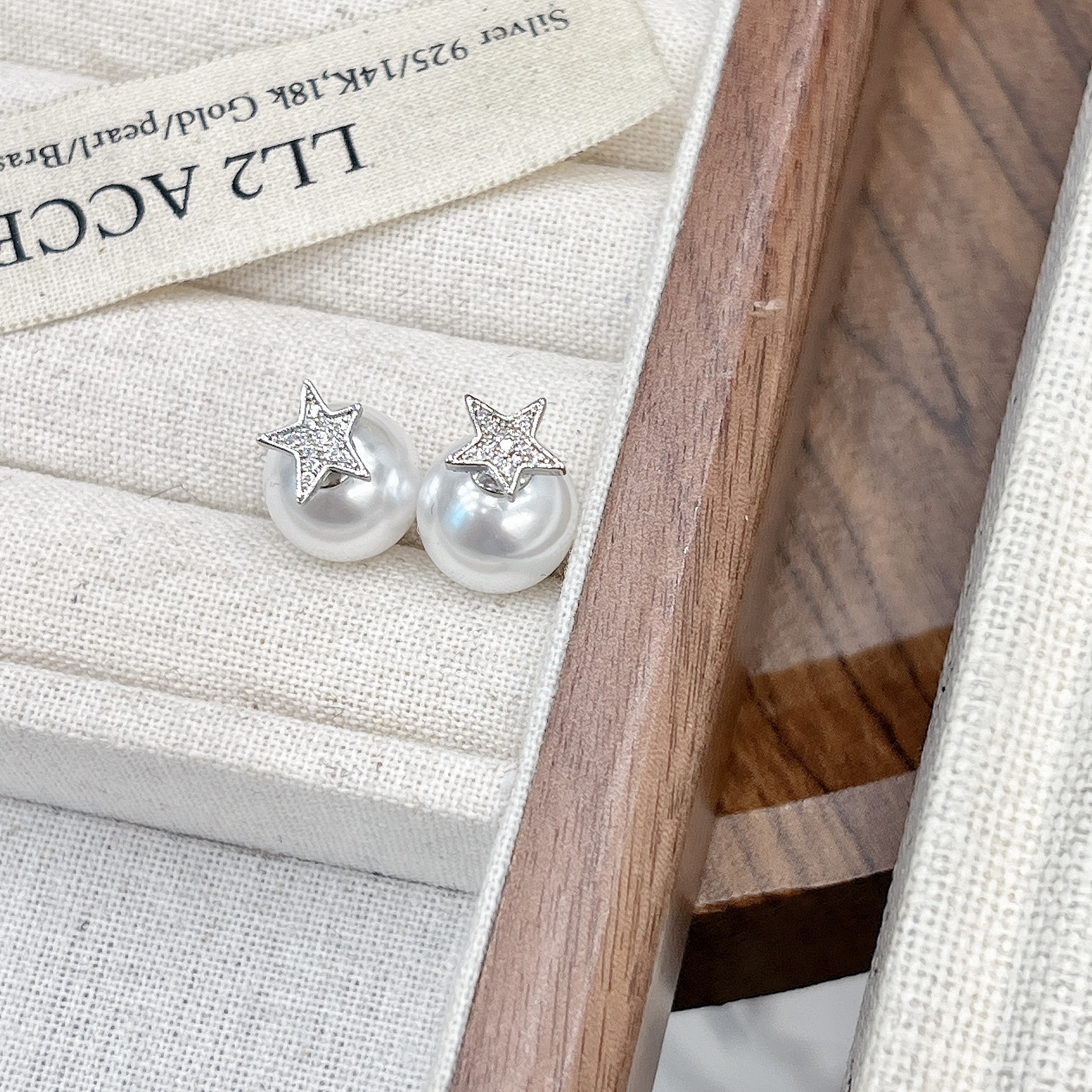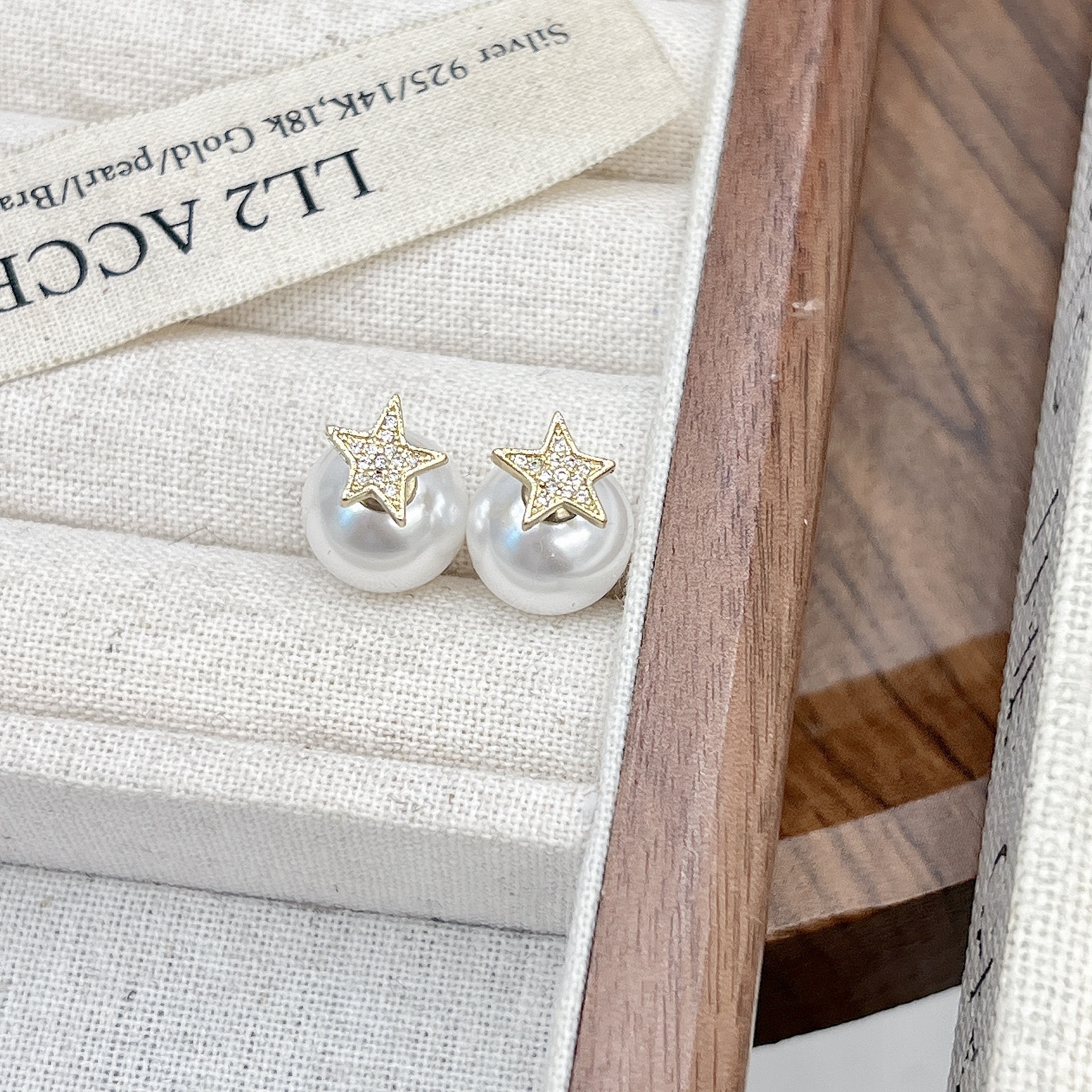 Temperament Light Luxury Original Diamond Star Pearl Earrings Temperament High-end All-match Niche Design Star Earrings Women