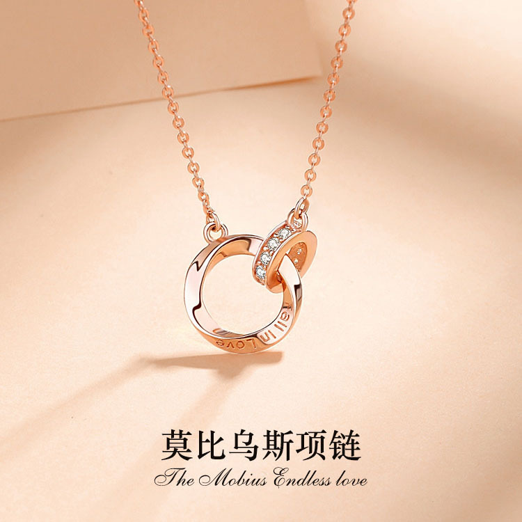 Mobius Double-ring Couple Necklace for Men and Women High-end Light Luxury Niche Ins Fashionable Clavicle Chain Jewelry