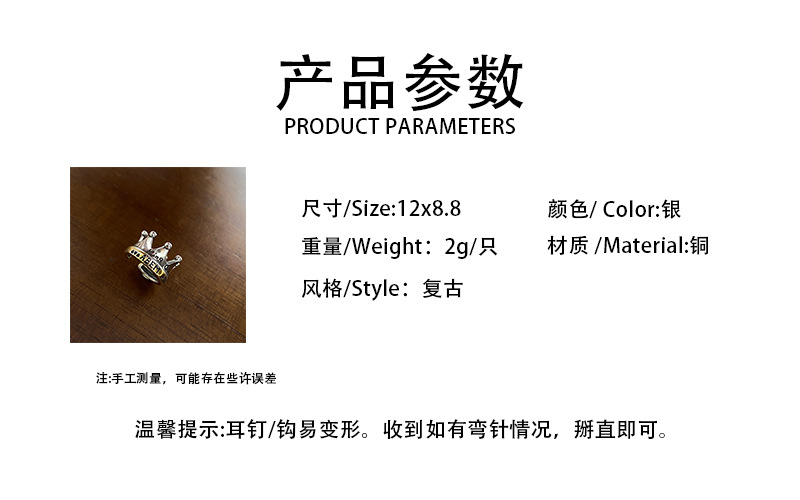 Vintage Old Crown Ear Clip Women's Ear Clip Without Ear Holes High-end Sense Niche Ear Clip Light Luxury South Korea Fashion Trendy Ear Accessories