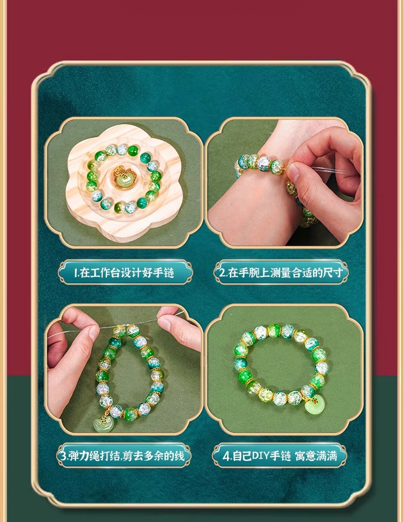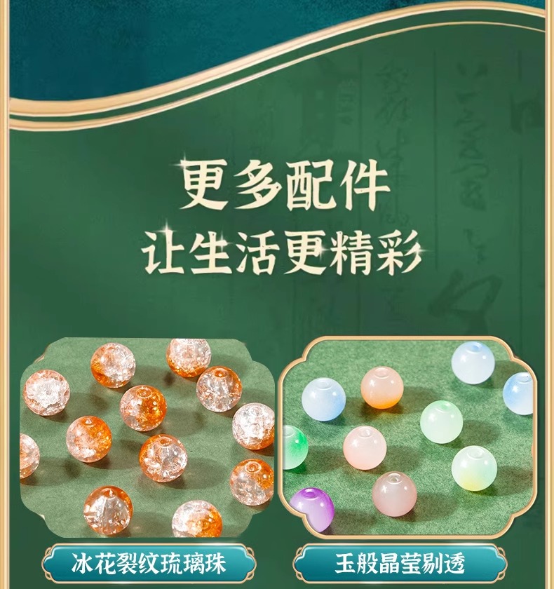 Color: Green deerskin jewelry box + luxury version 8 colors 400 beads ancient style glass beads set meal