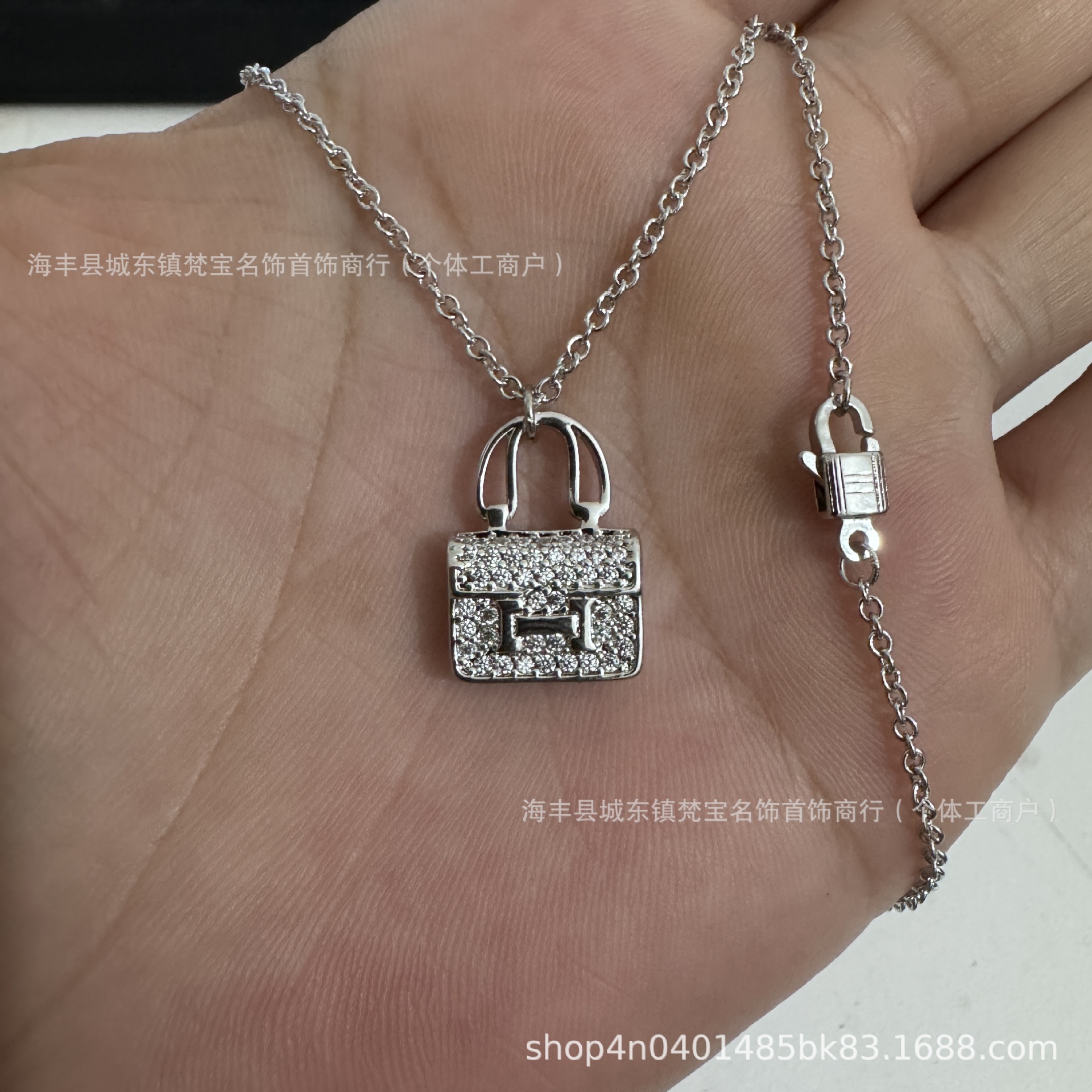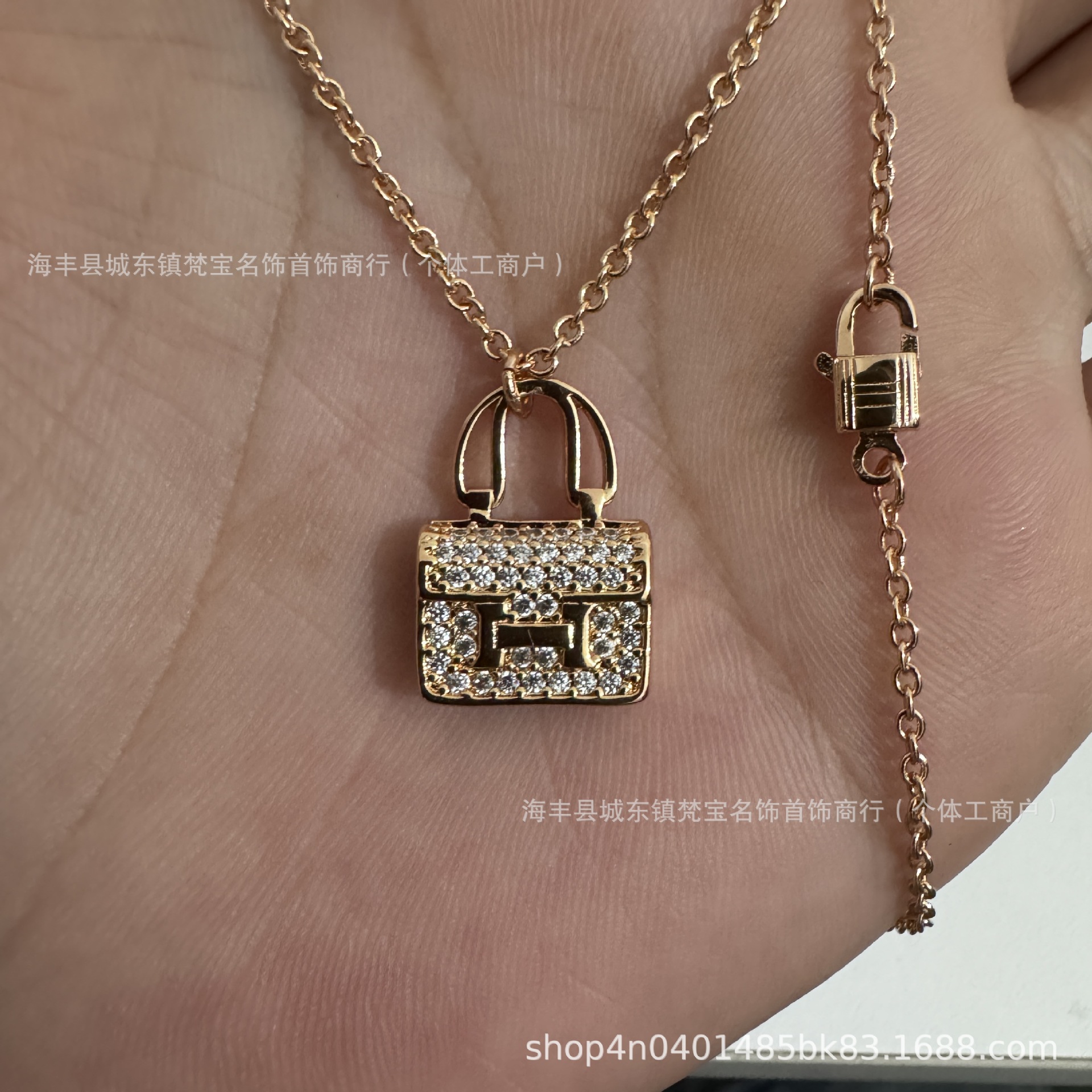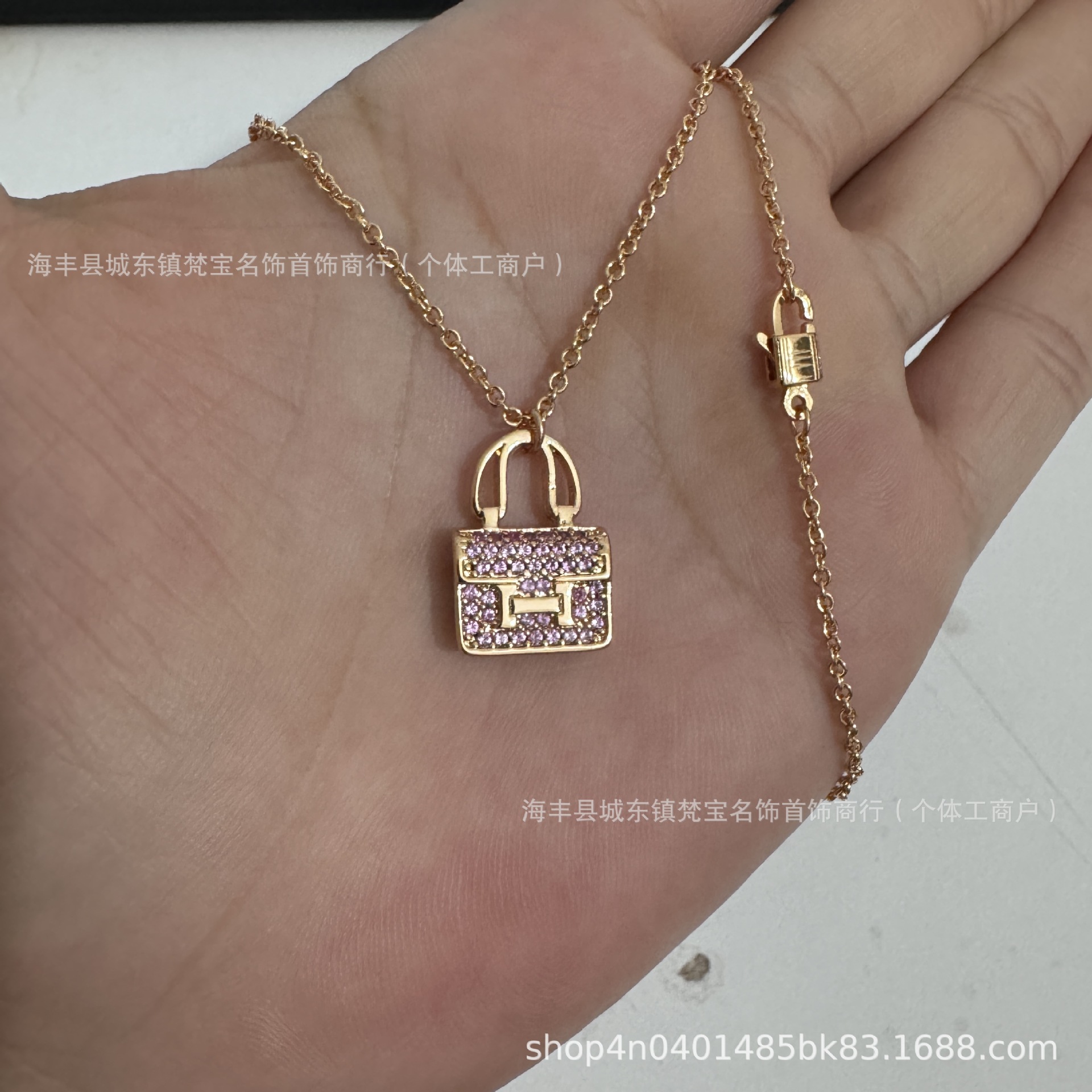 High-End New Model Bag Necklace for Women H Kangkang Bag Pink Diamond Collarbone Chain Factory Direct Sale Tiktok Live Streaming Hot Item