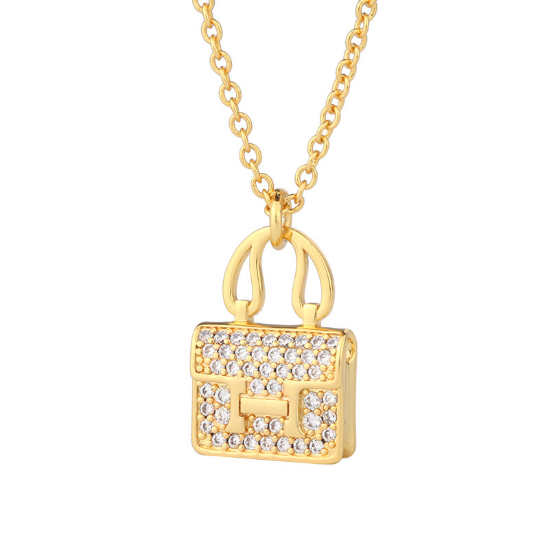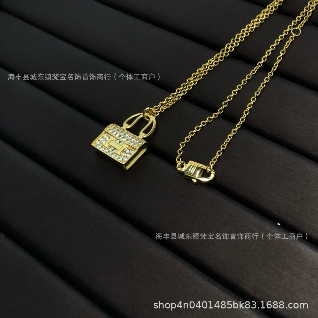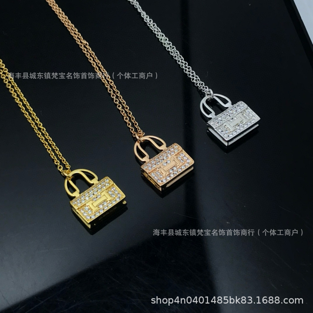High-End New Model Bag Necklace for Women H Kangkang Bag Pink Diamond Collarbone Chain Factory Direct Sale Tiktok Live Streaming Hot Item