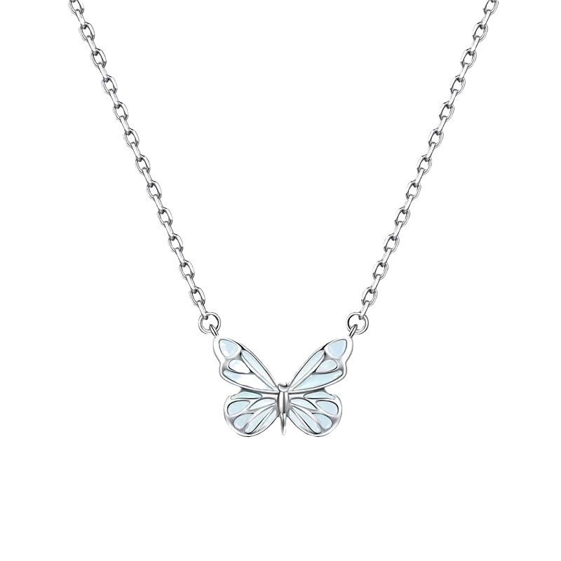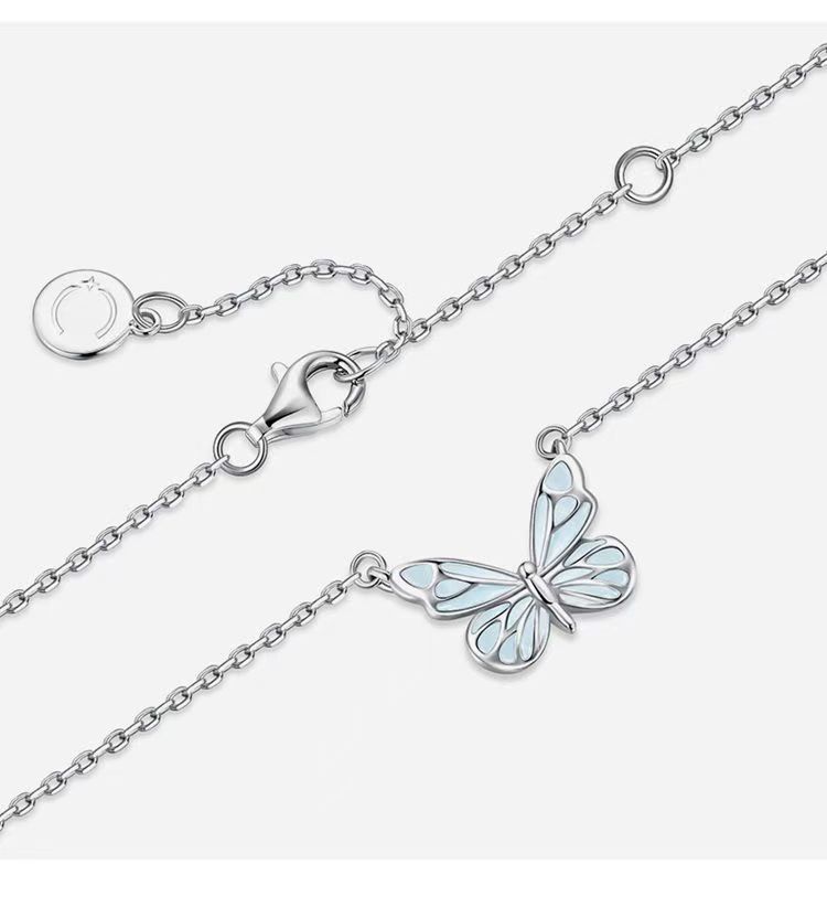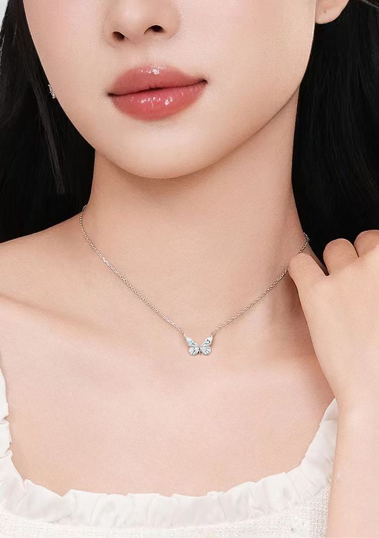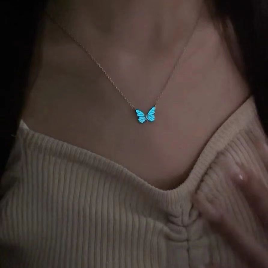 Fan's New Arrival Butterfly Light Necklace Women's Ins Style Light Luxury Simple Aurora Blue Smart Butterfly Clavicle Chain