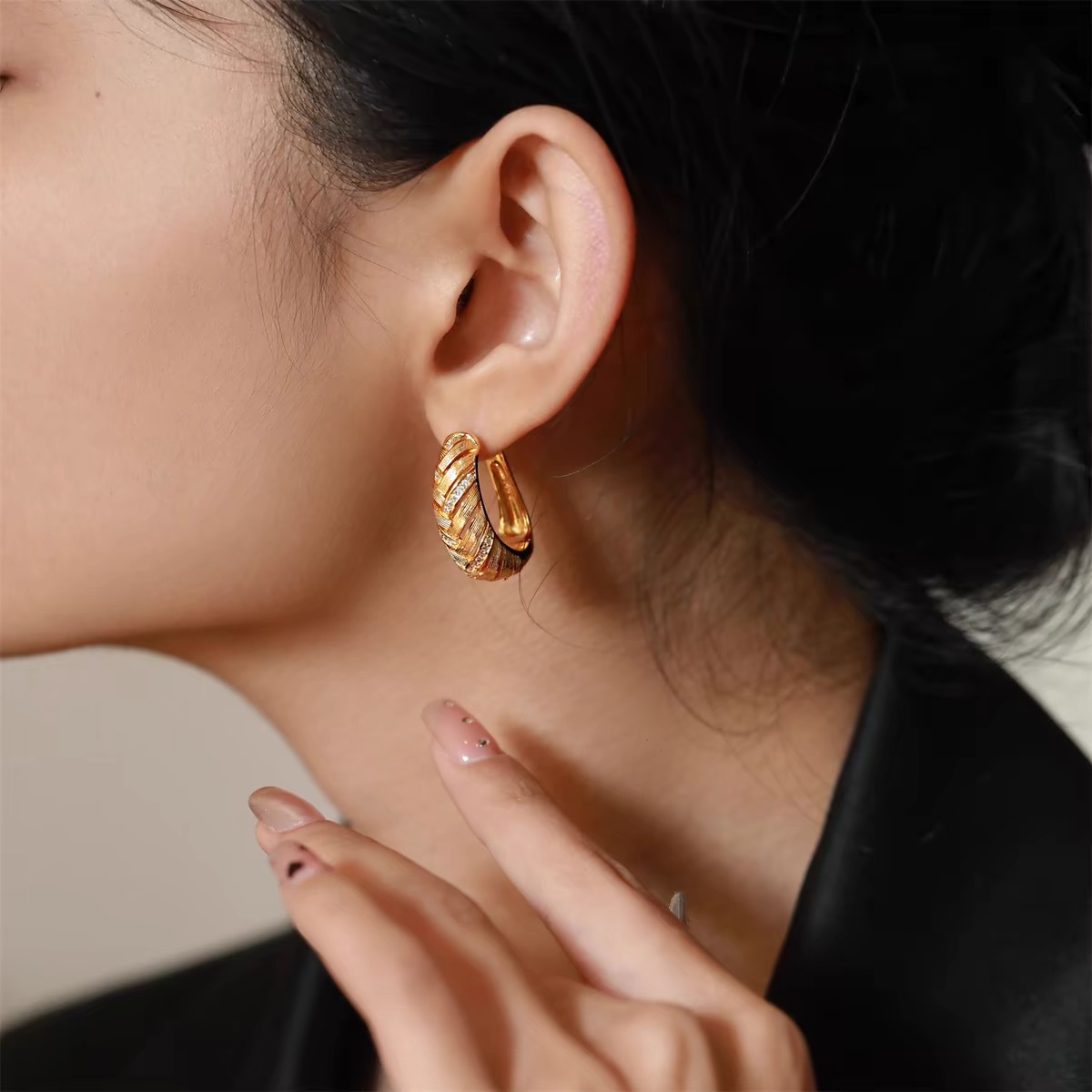 Italian ~ vintage French brushed wheat ear woven earrings women's niche design light luxury high-end earrings new