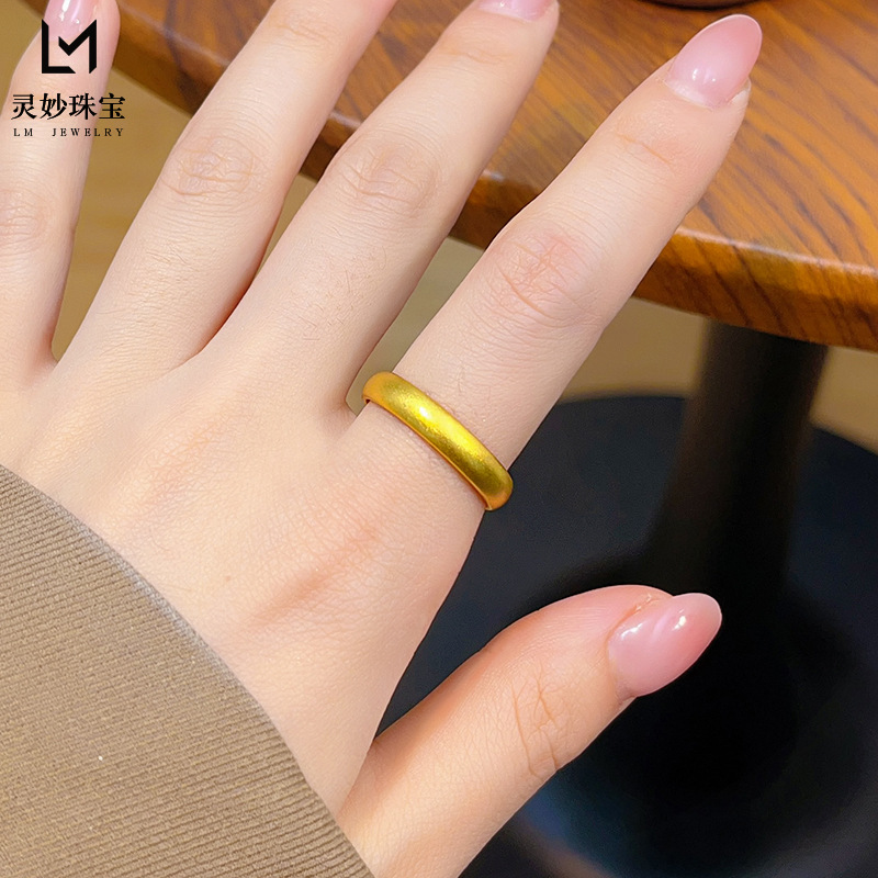 Gold Store's Same Style Alluvial Gold 999 Ancient Plain Ring Solid Frosted Closed Ring Aperture Ring Classic Female Gift
