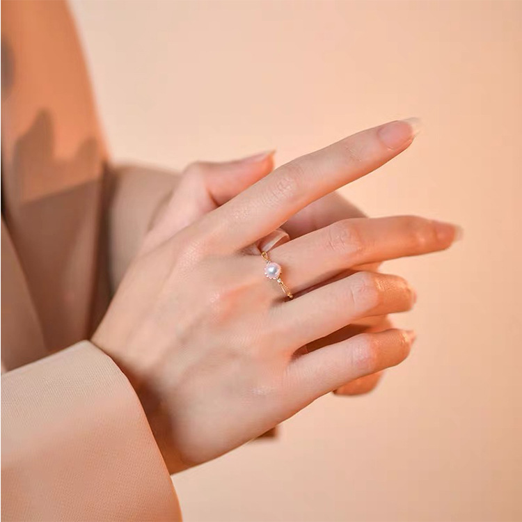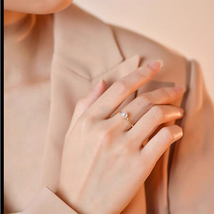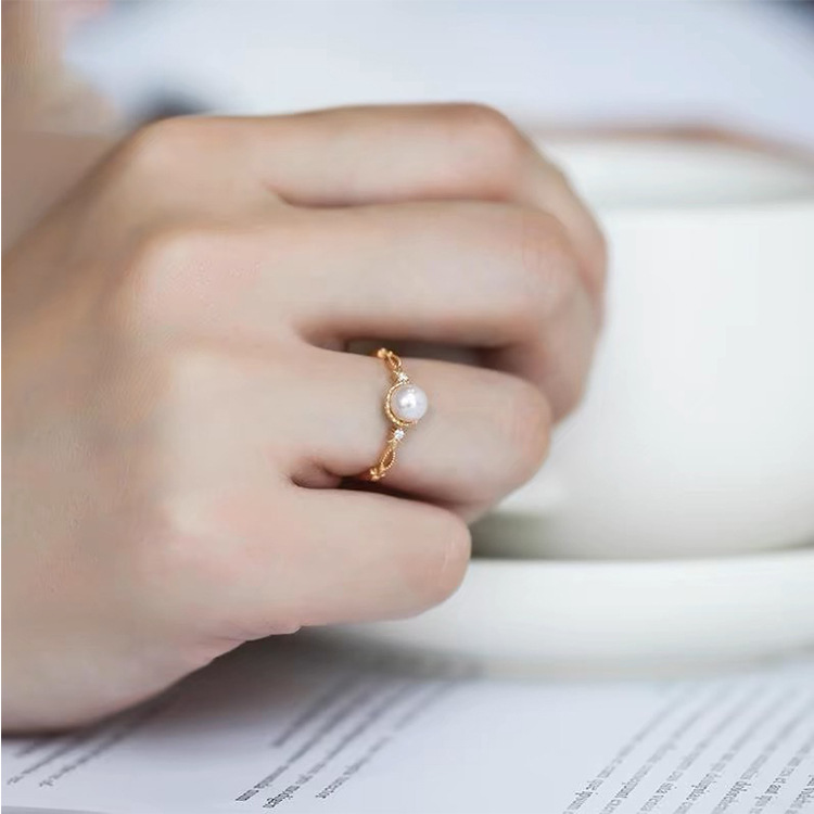 Original Design Imitation Natural Sea Water Pearl Fashion All-match Women's Opening Ring Gold-plated Zircon Light Luxury Ring