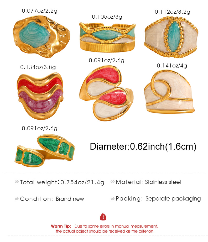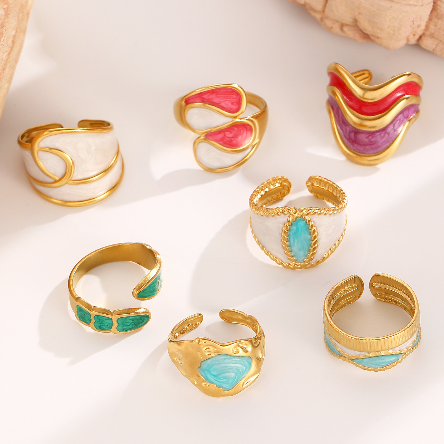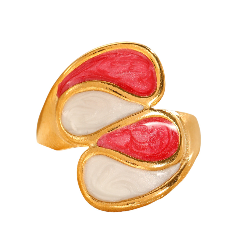 Stainless steel special-shaped color painting oil ring: White dripping oil, pink dripping oil, two-color color matching dripping oil ring, asymmetrical dripping oil ring purple red dripping oil ring,