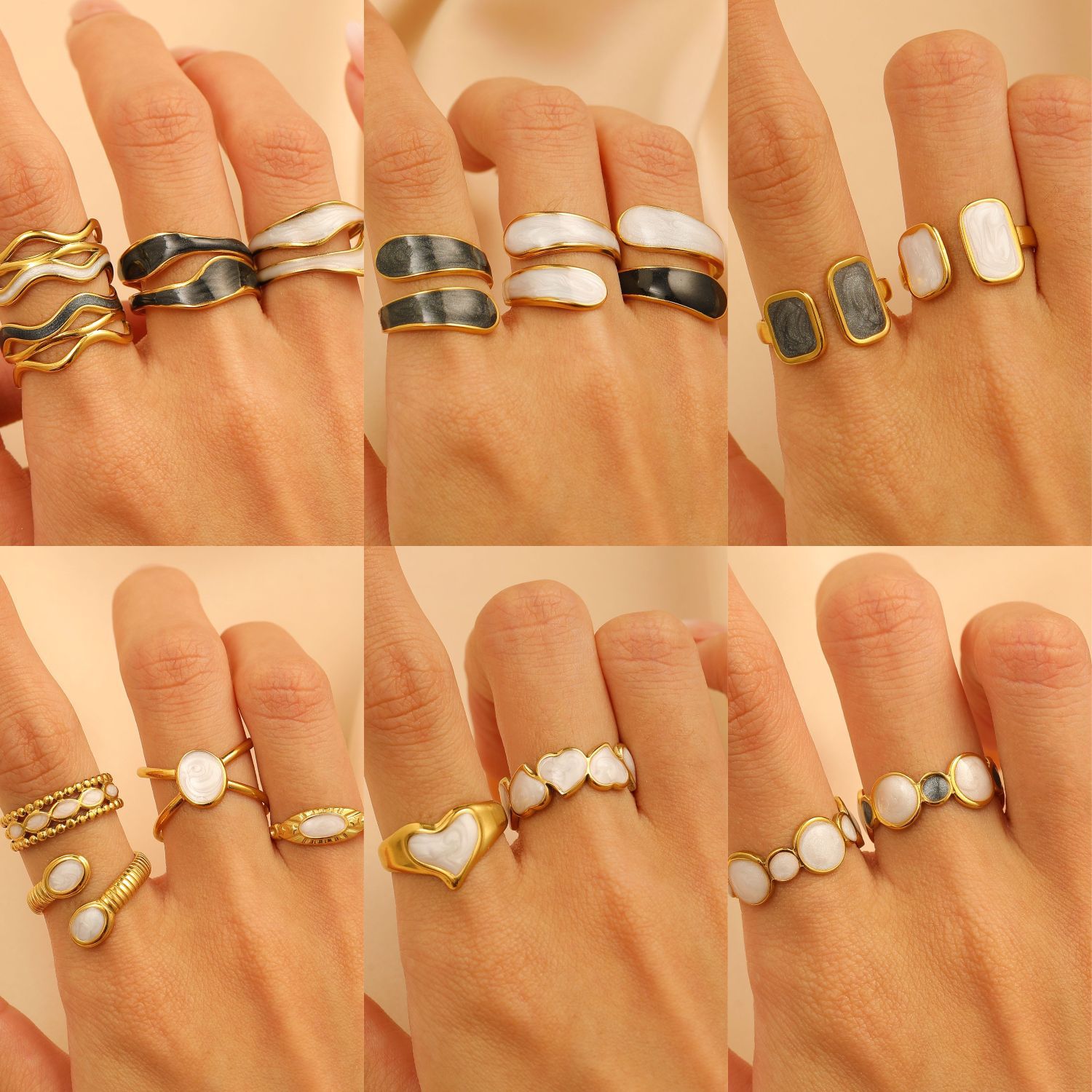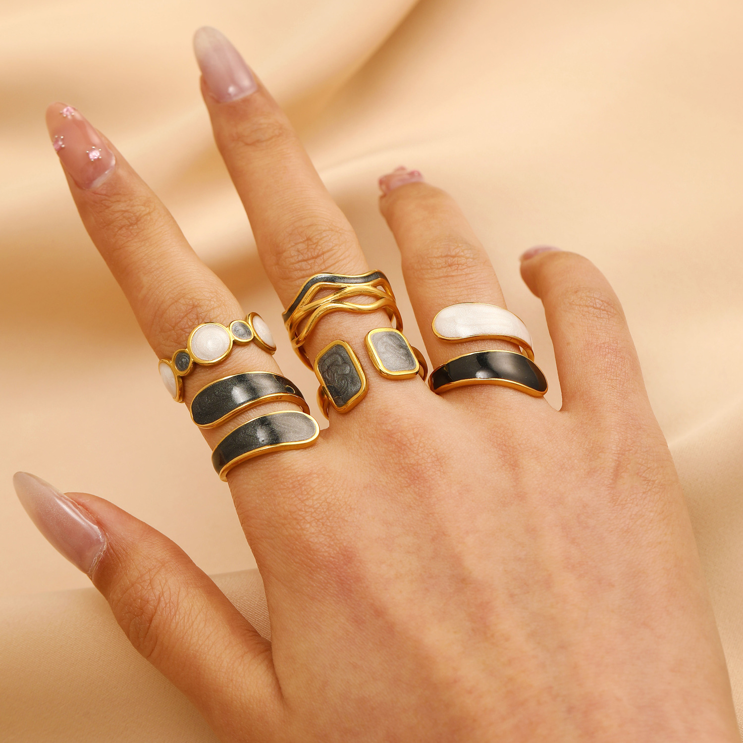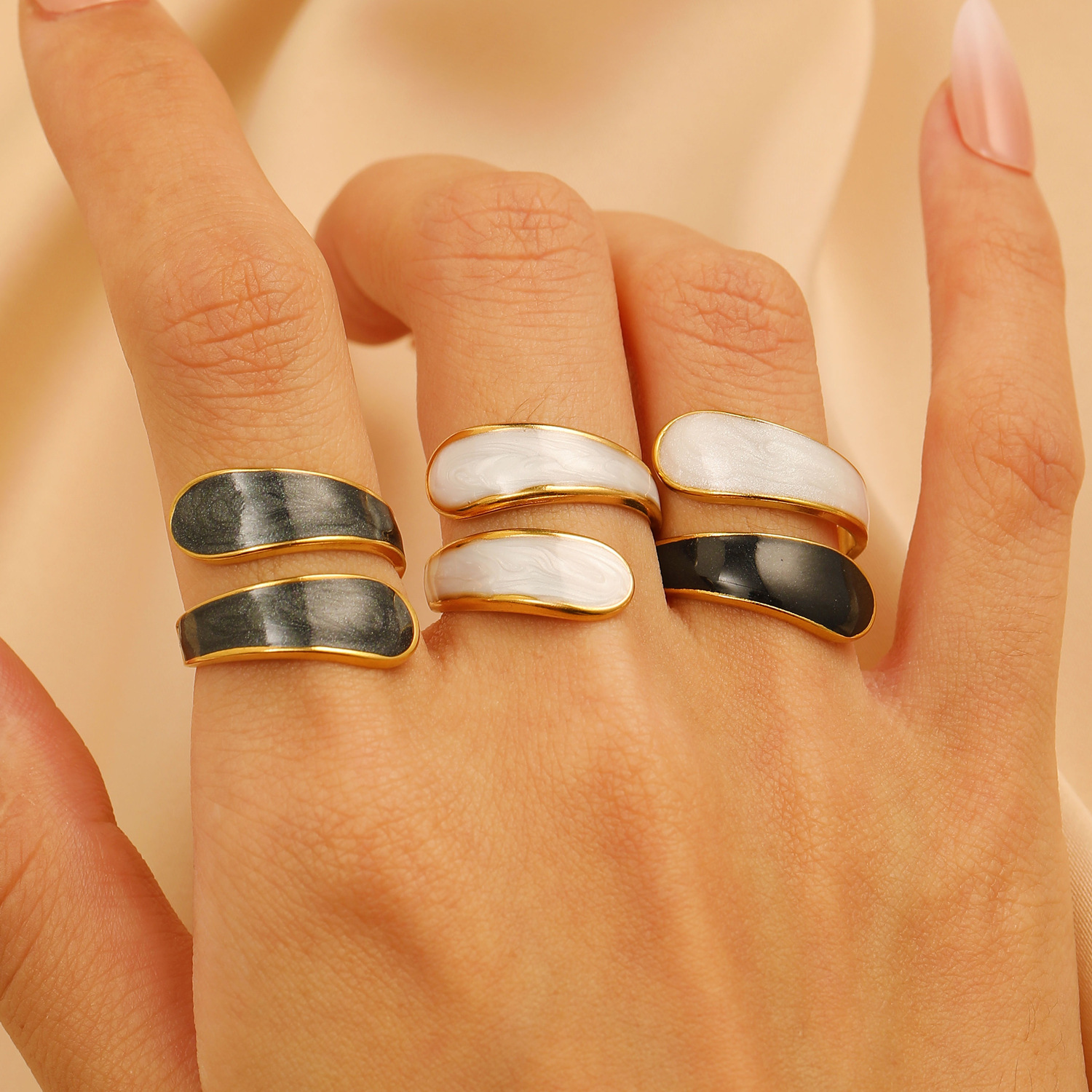 Stainless steel special-shaped color painting oil ring: White dripping oil, pink dripping oil, two-color color matching dripping oil ring, asymmetrical dripping oil ring purple red dripping oil ring,