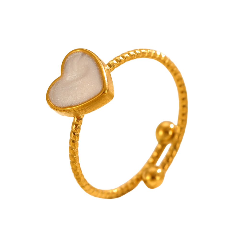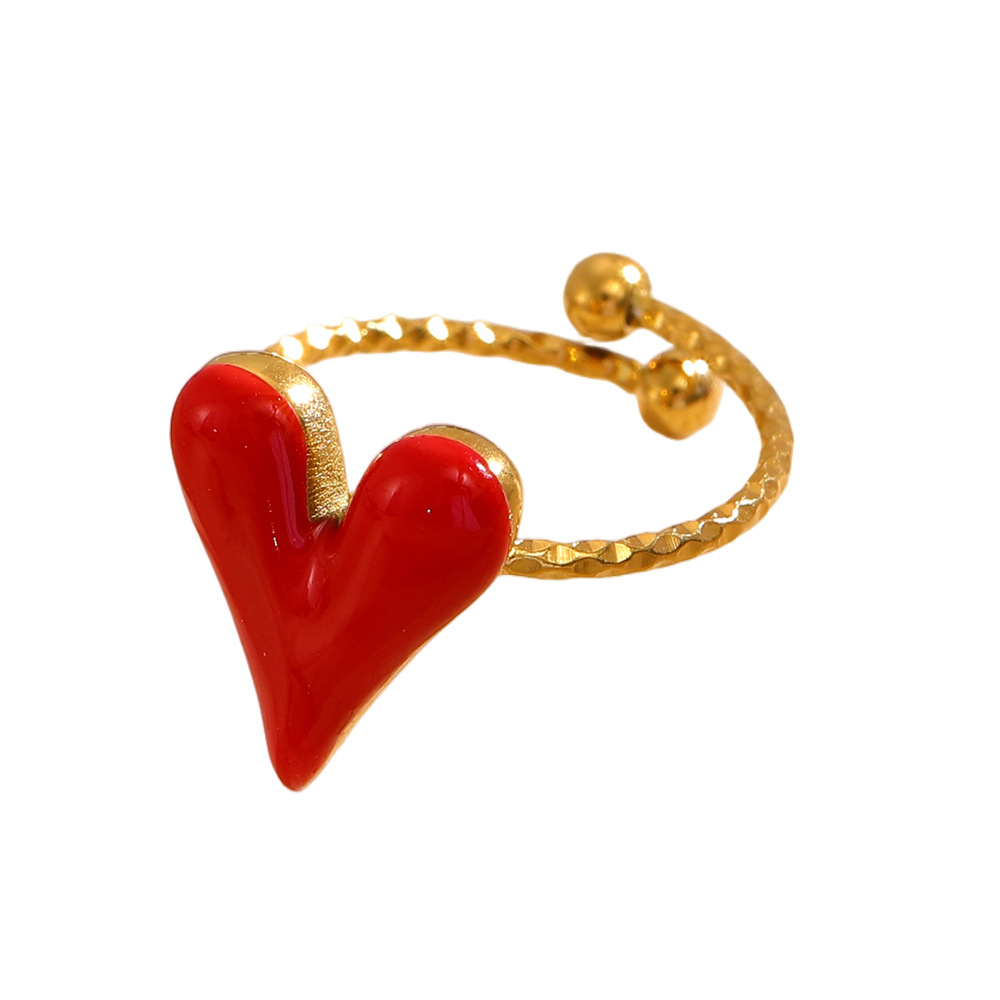 Simple flower painting oil ring: Flower pink oil dripping stainless steel open ring, oil dripping love ring