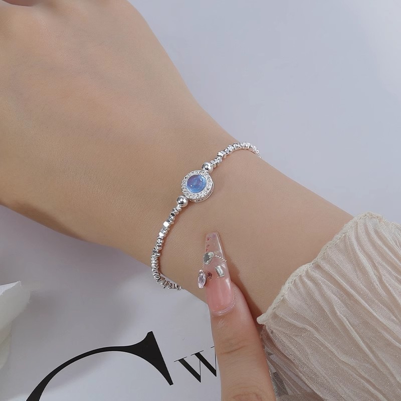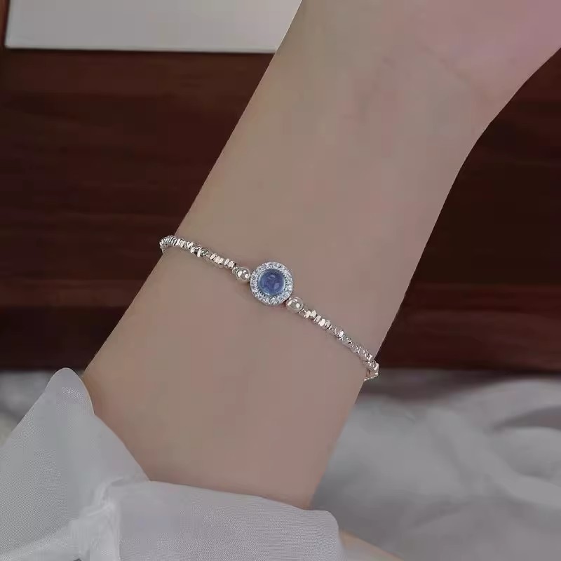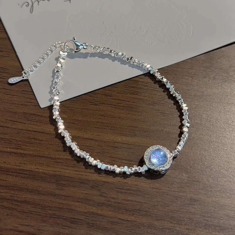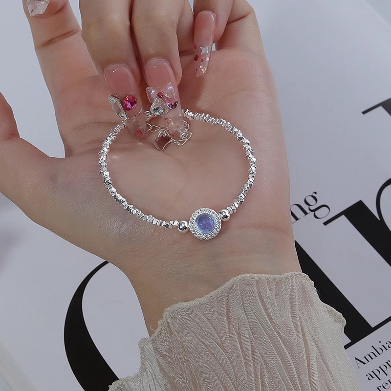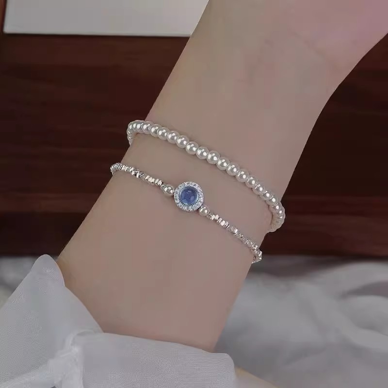 Aquamarine Broken Silver Pearl Bracelet Women's New Light Luxury Niche High-end Sense Exquisite Bracelet Birthday Gift for Girlfriend