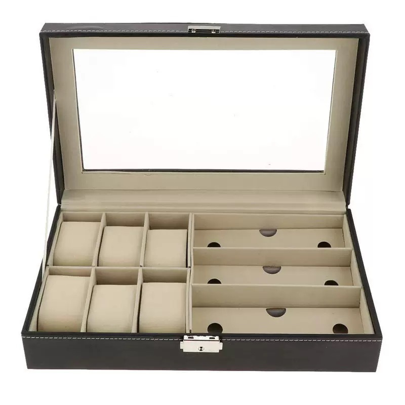 Specifications and models: 6+3 position watch glasses case; pu leather black + beige