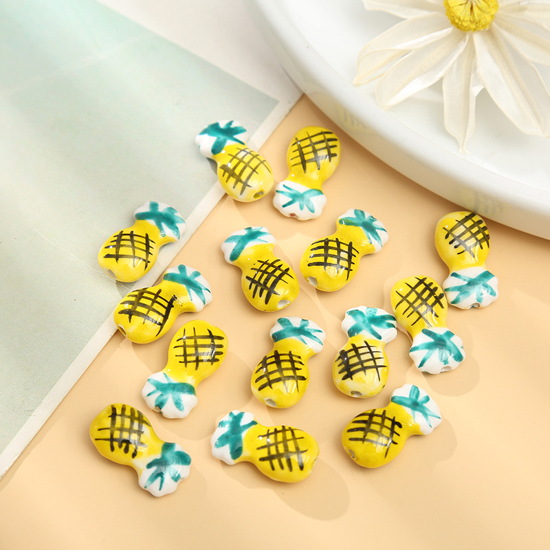 Ins style Hawaiian fruit pineapple ceramic beads diy bracelet necklace earrings loose beads beaded accessories material