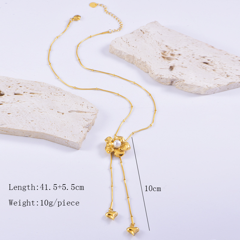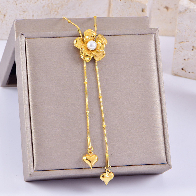 New Chinese-style Pearl Camellia Love Long Tassel Necklace Niche Round Bead Snake Bone Chain All-match Accessories Woolen Chain