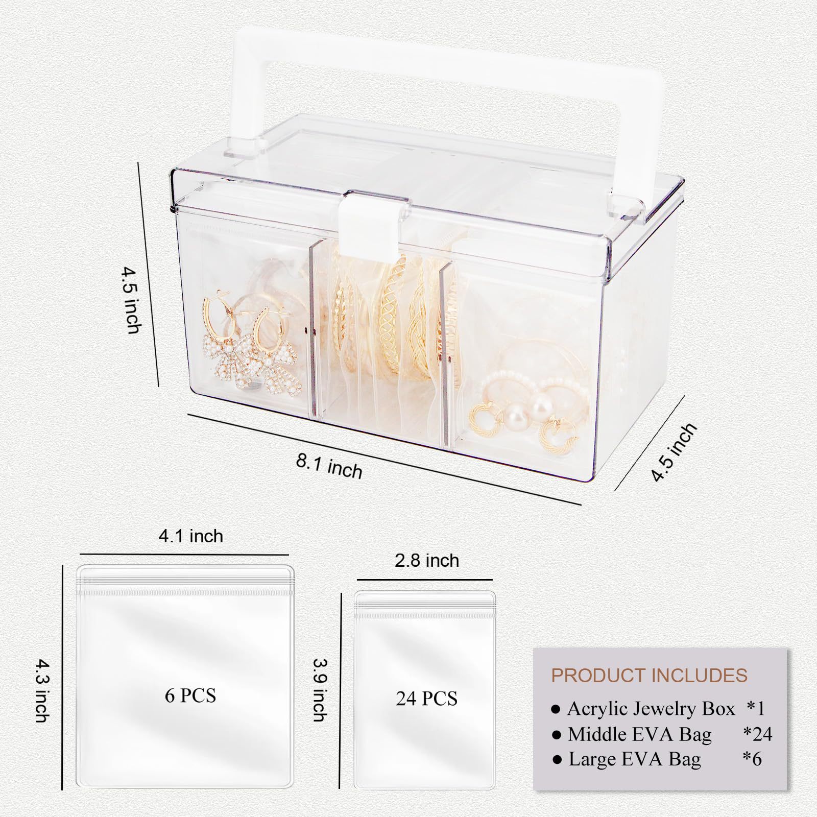 手提亚克力首饰盒抗氧化EVA首饰项链耳环视频密封袋收纳盒带提手