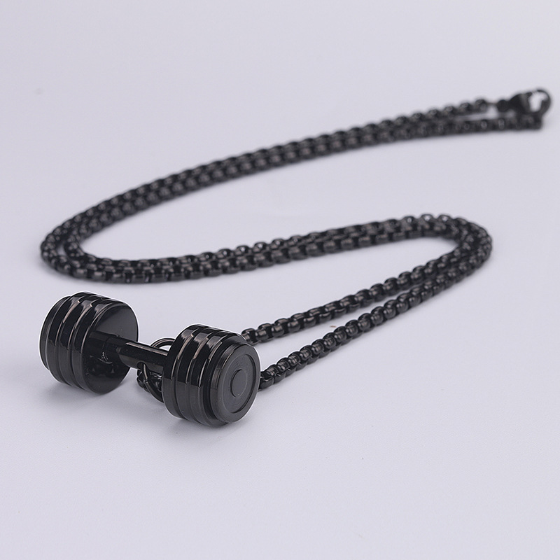 Temu Shein Factory Fashion Key Body Dumbbell Necklace Personalized Hip-Hop Barbell Men's Pendant