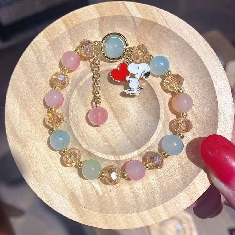 Color: Pink bow tie jade dog glass bracelet (bag)