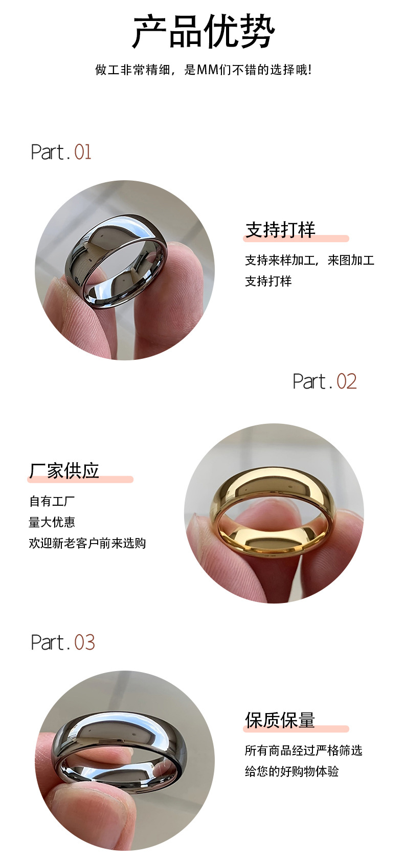 Chengge Fashion Simple Bright Surface Arc Plain Ring Ring Couple Ring Ring Jewelry Bracelet in stock