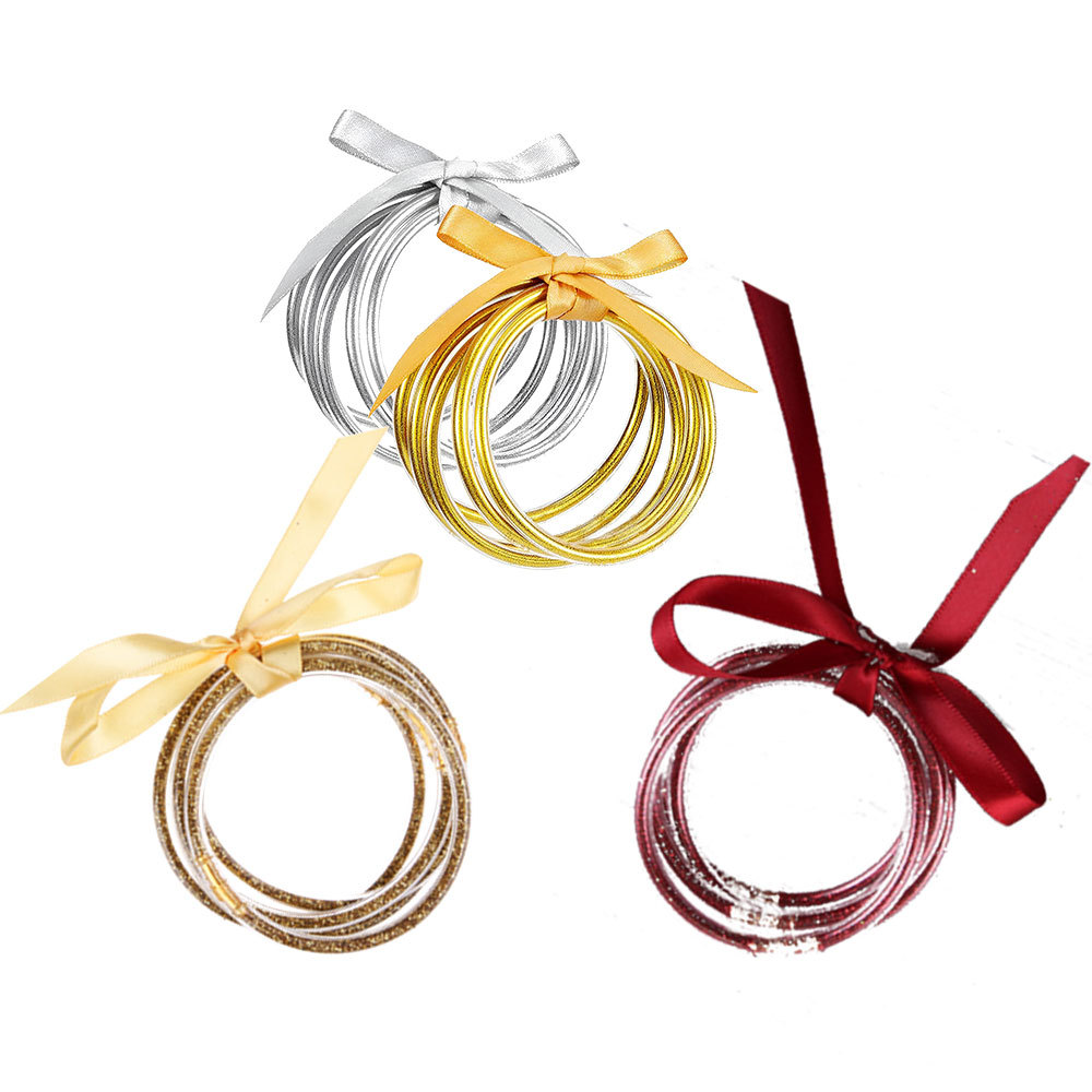 Cross-border hot-selling bow gold powder silicone bracelet combination 4-piece gold and silver mix silicone bracelet wholesale