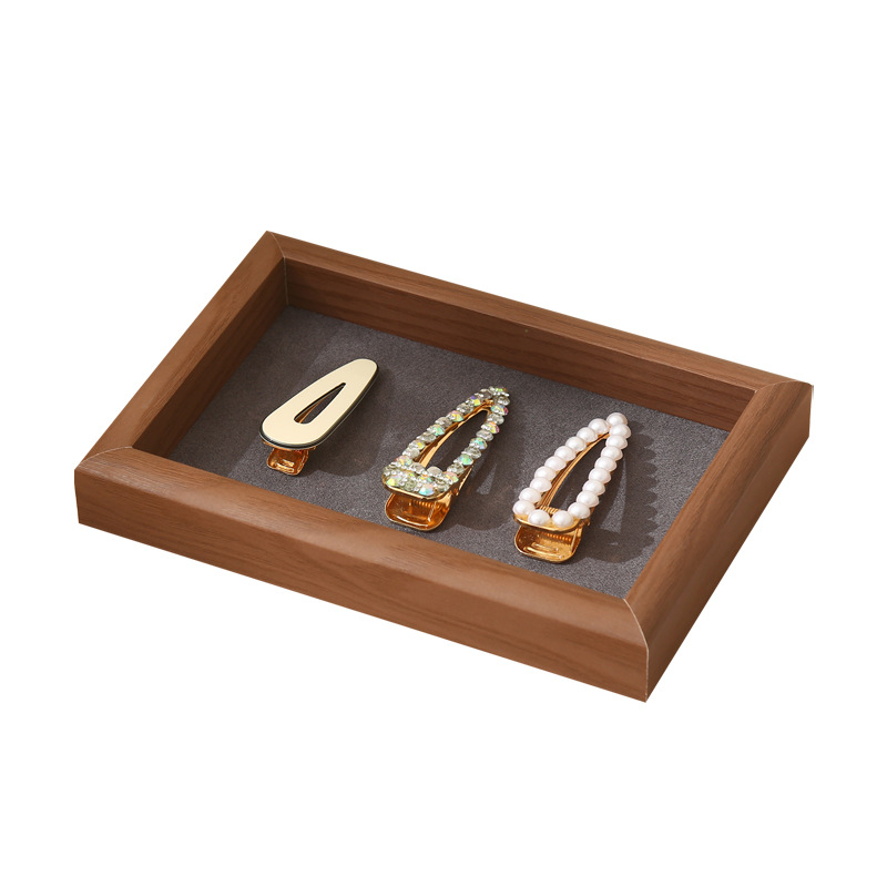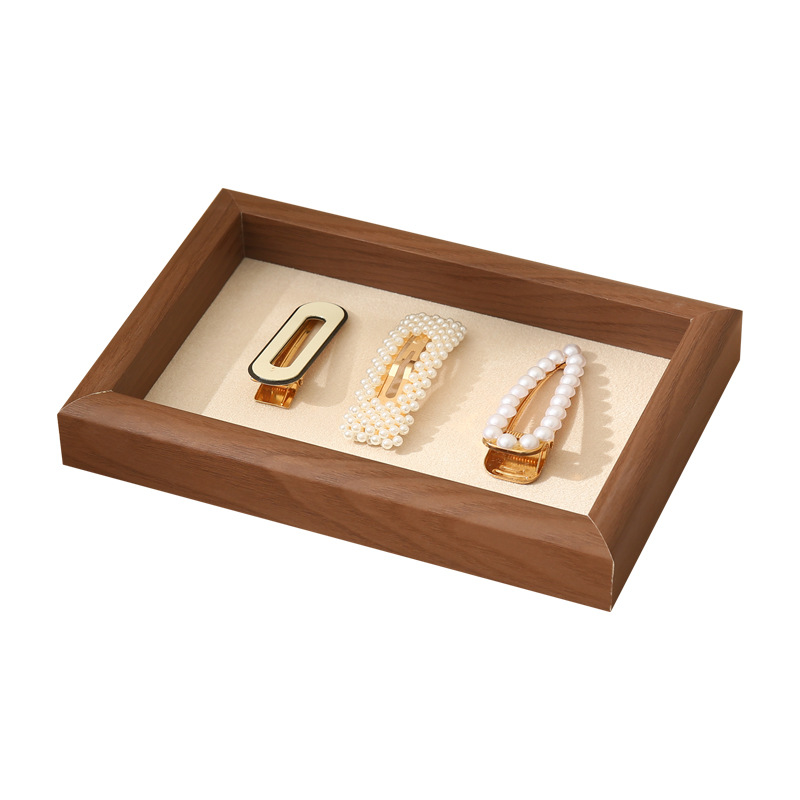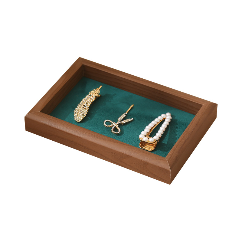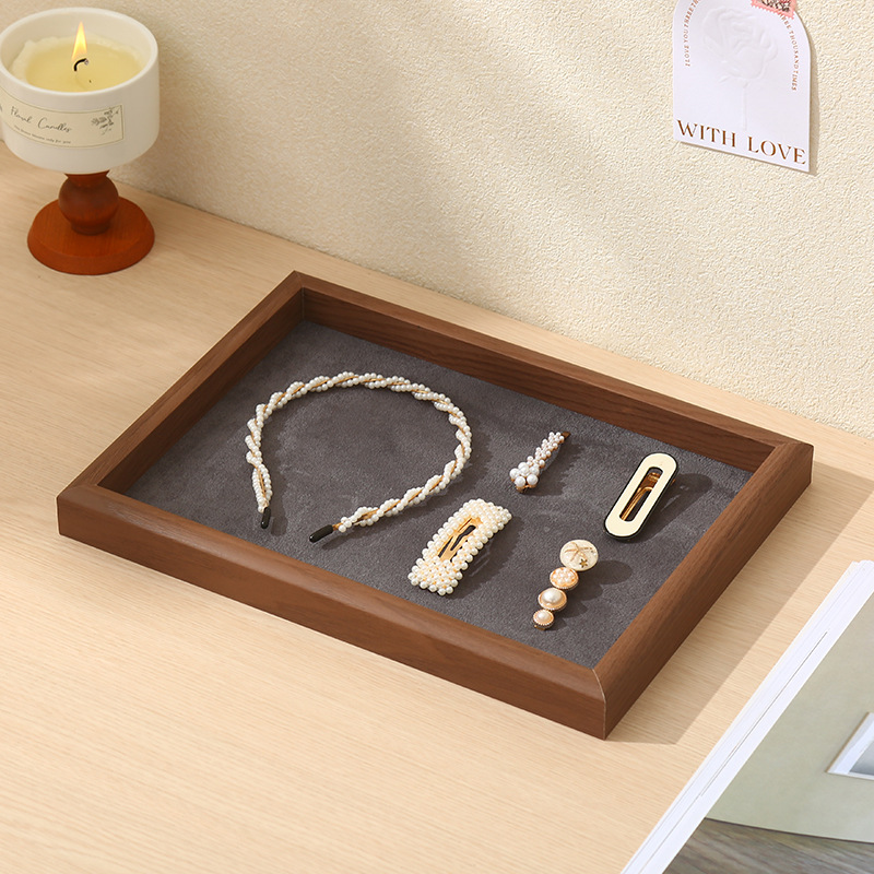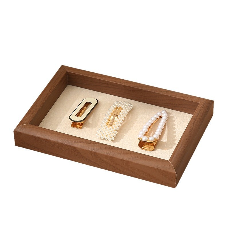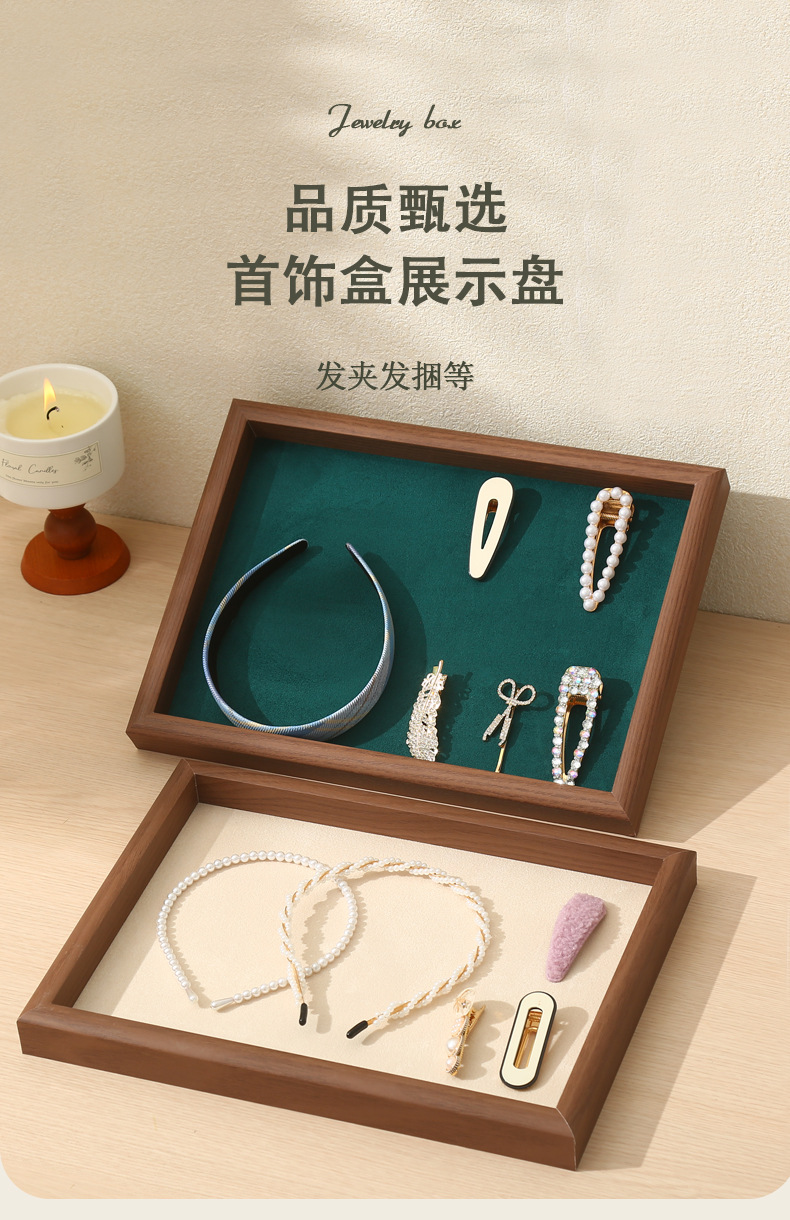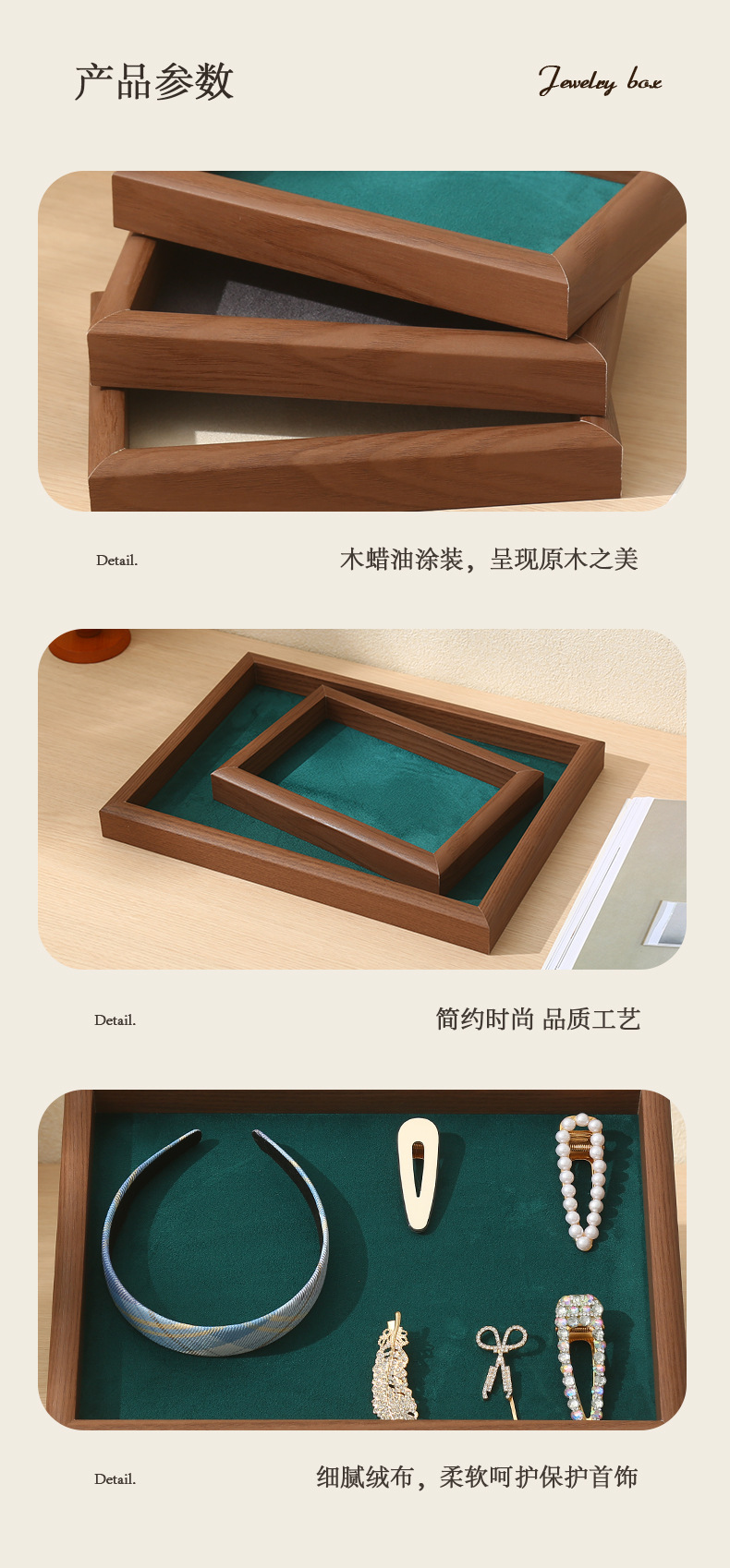 Jewelry display plate walnut wood grain hairpin bracelet storage tray jewelry display props flannel pallet