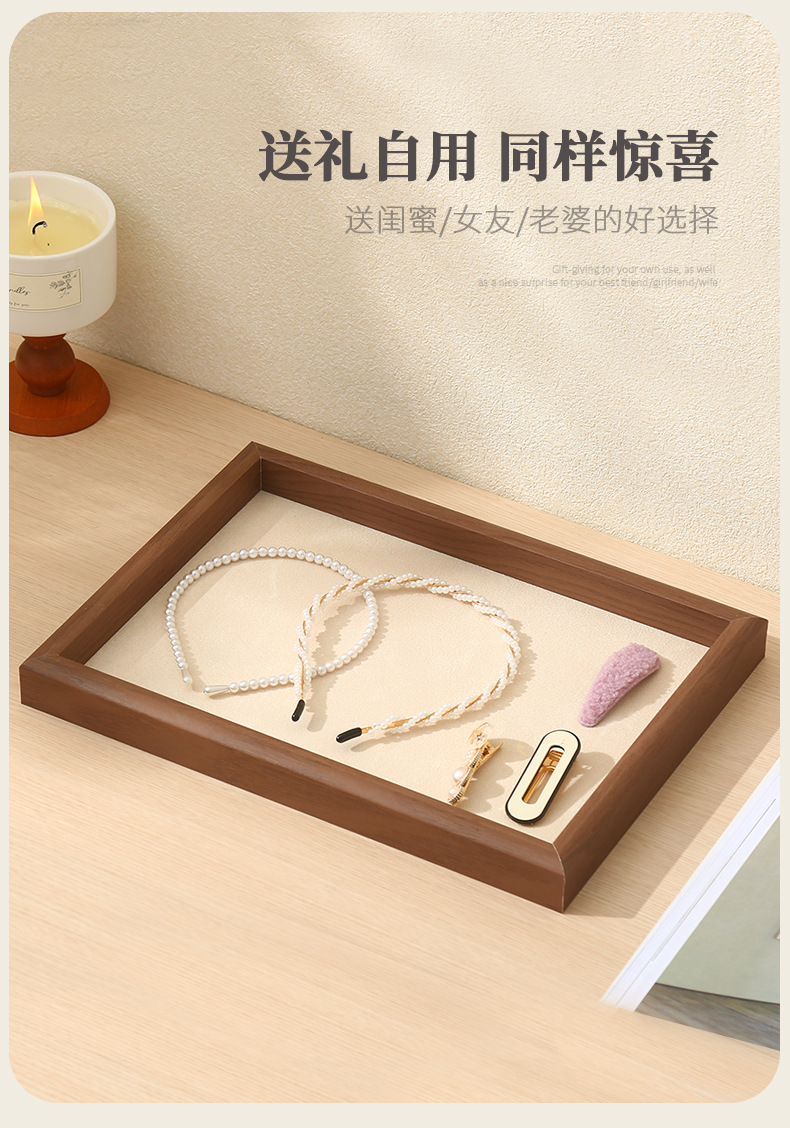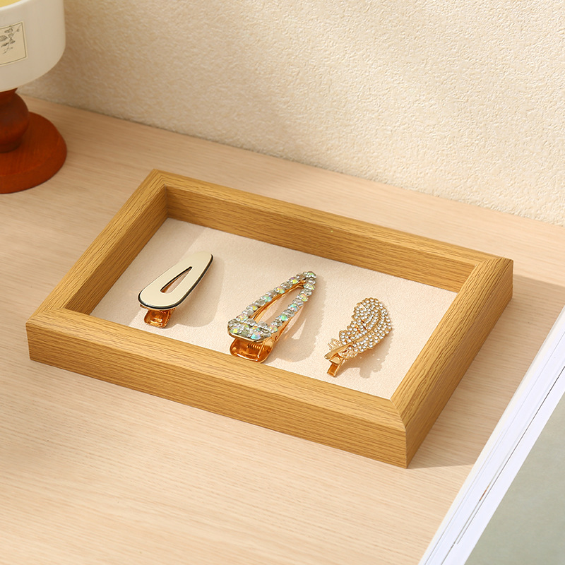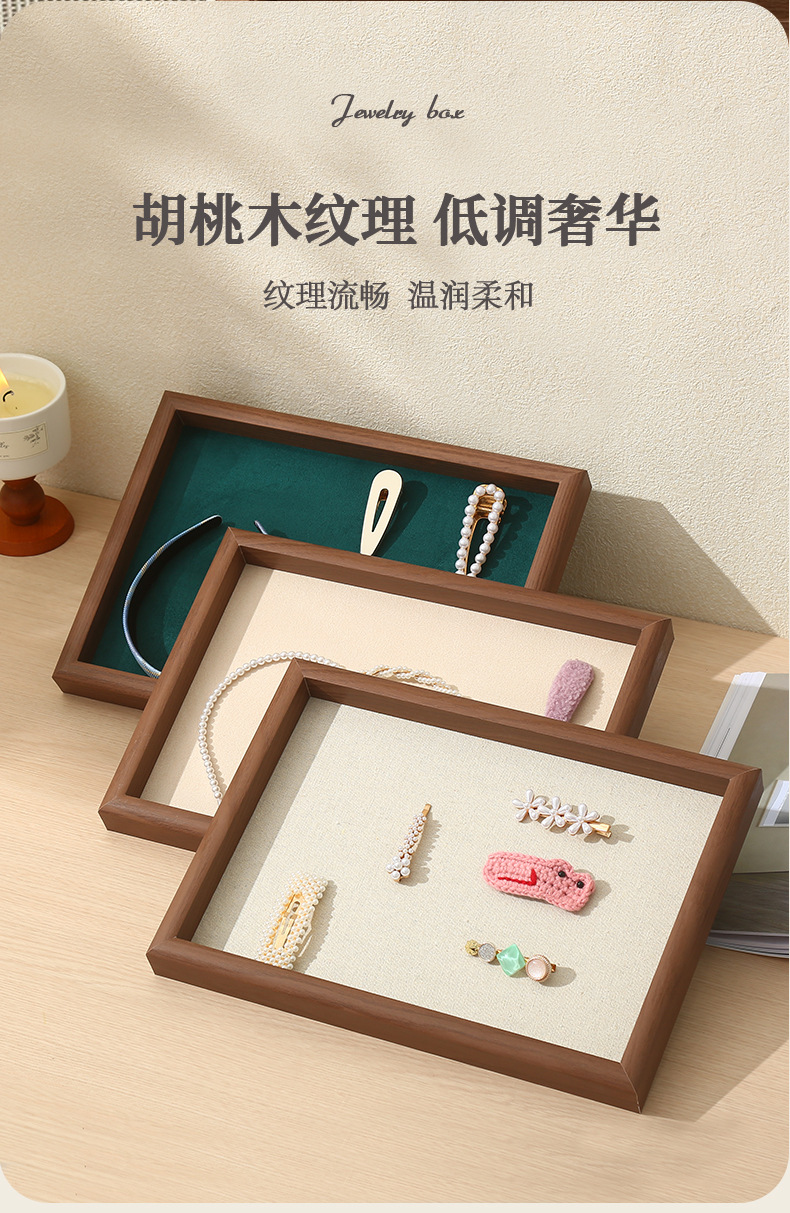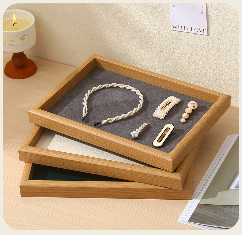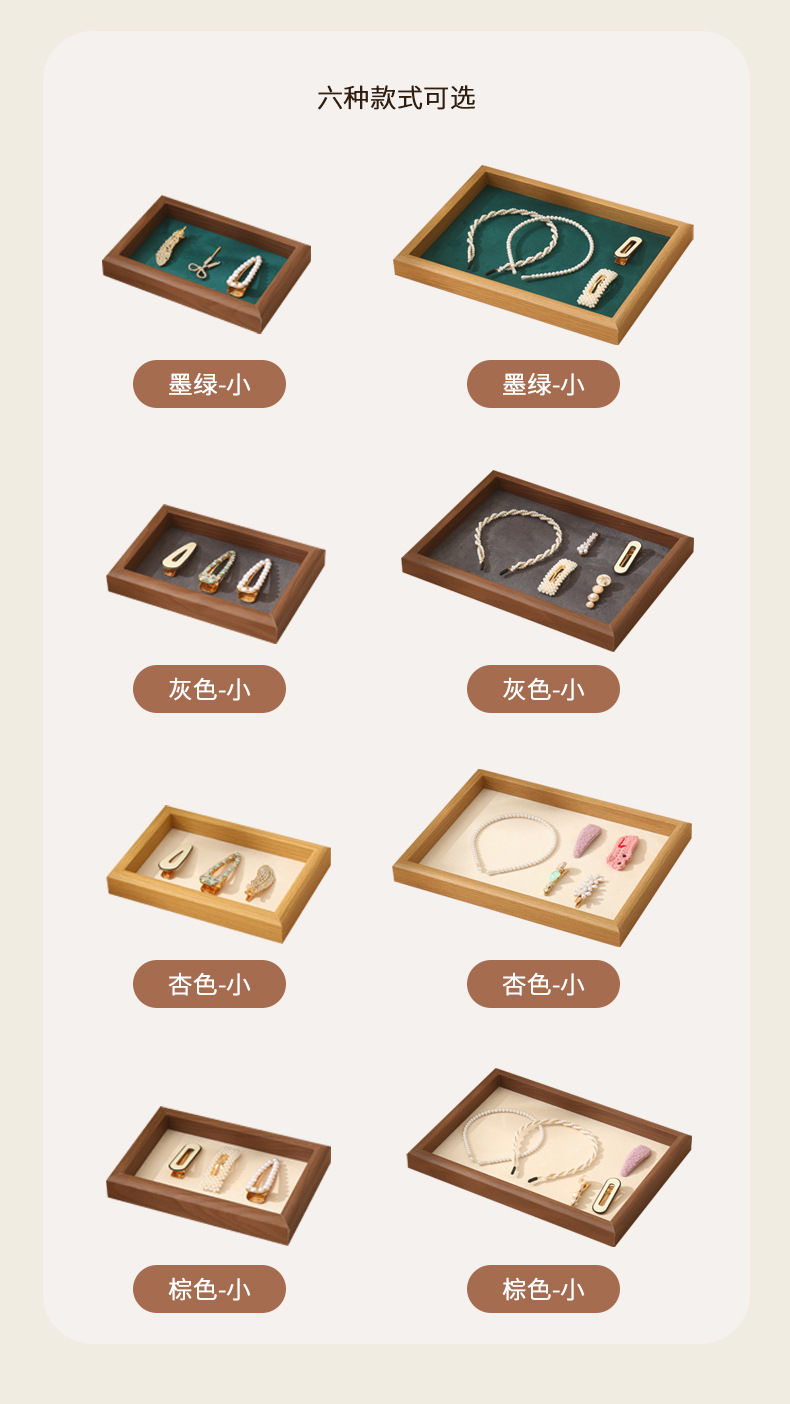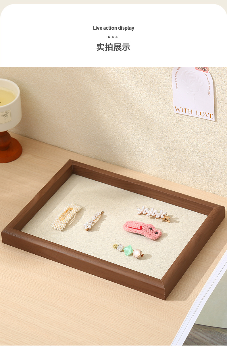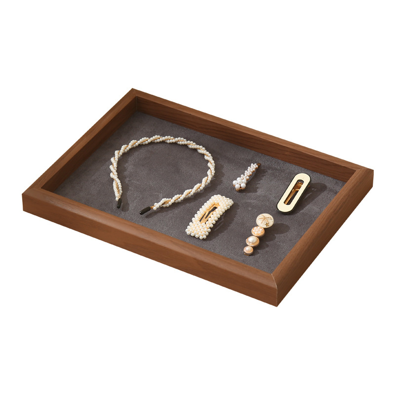 Jewelry display plate walnut wood grain hairpin bracelet storage tray jewelry display props flannel pallet