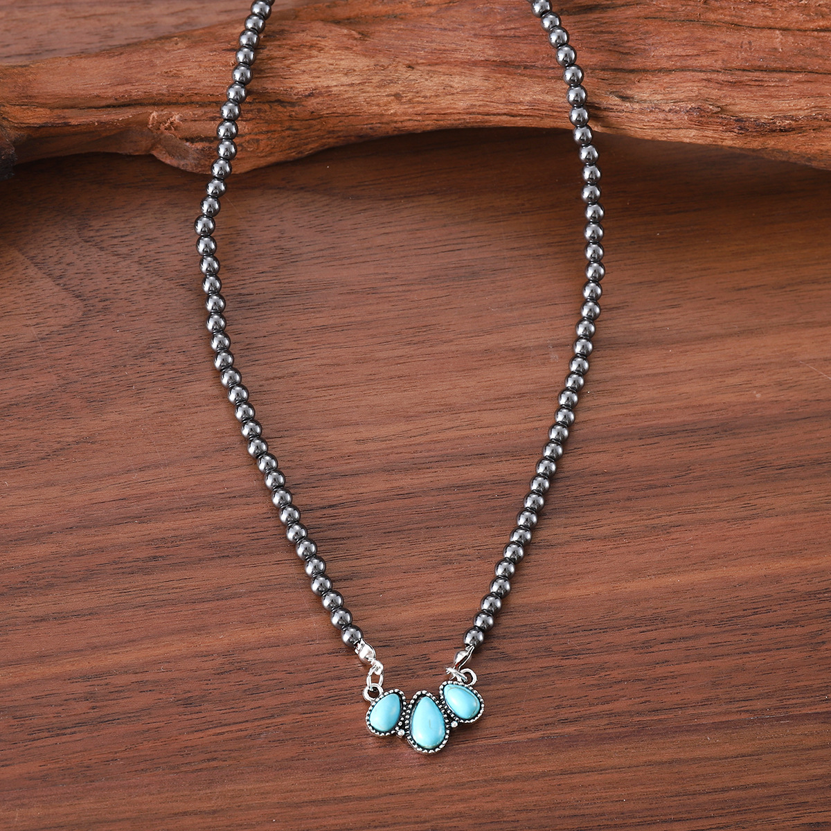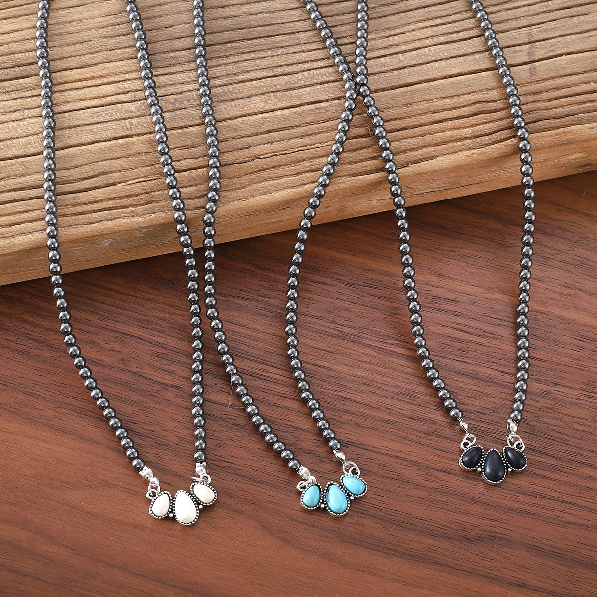 产品名称:黑色圆珠镶嵌松石吊坠项链