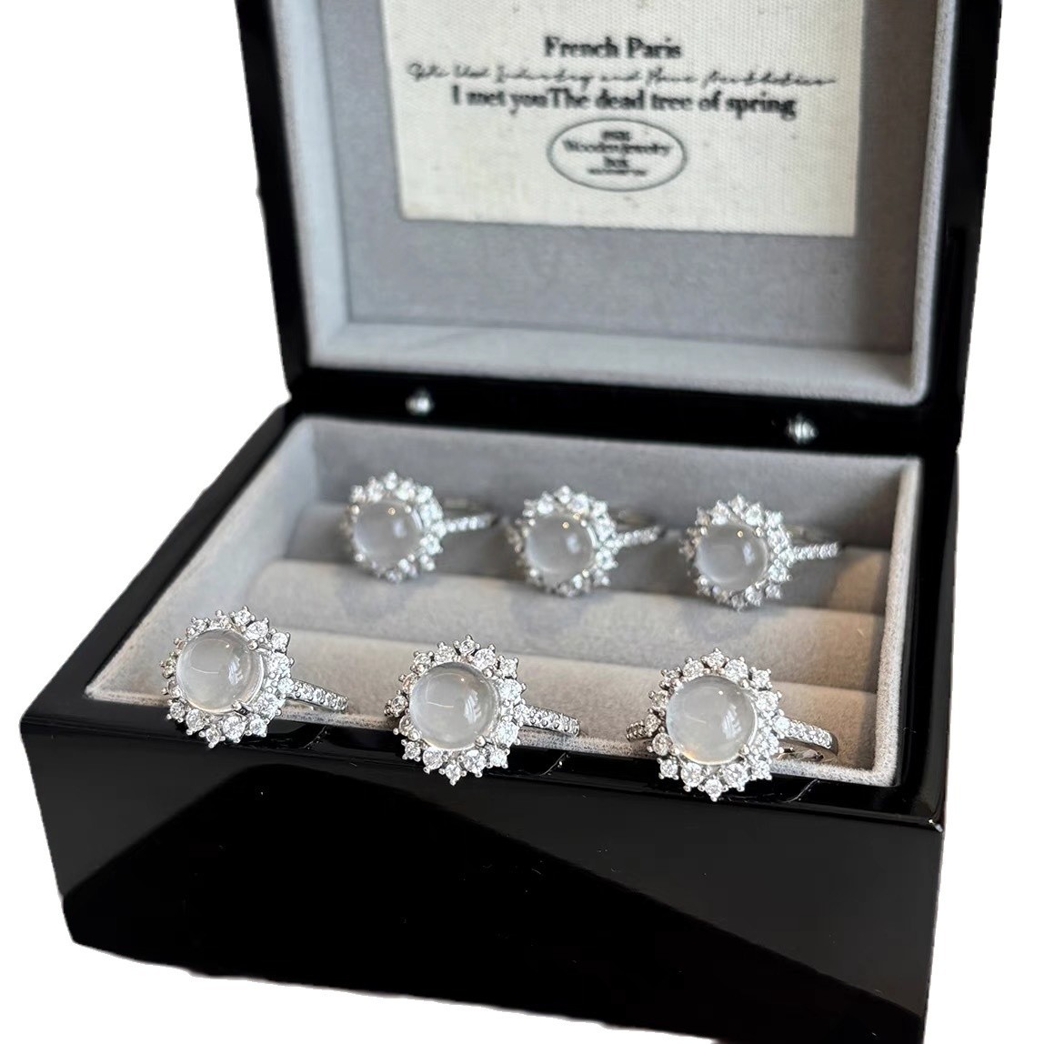 New Chinese Style White Chalcedony Egg Face Ring Women's Niche Design Sense Light Luxury High Sense Finger Ring Adjustable Tide Ring