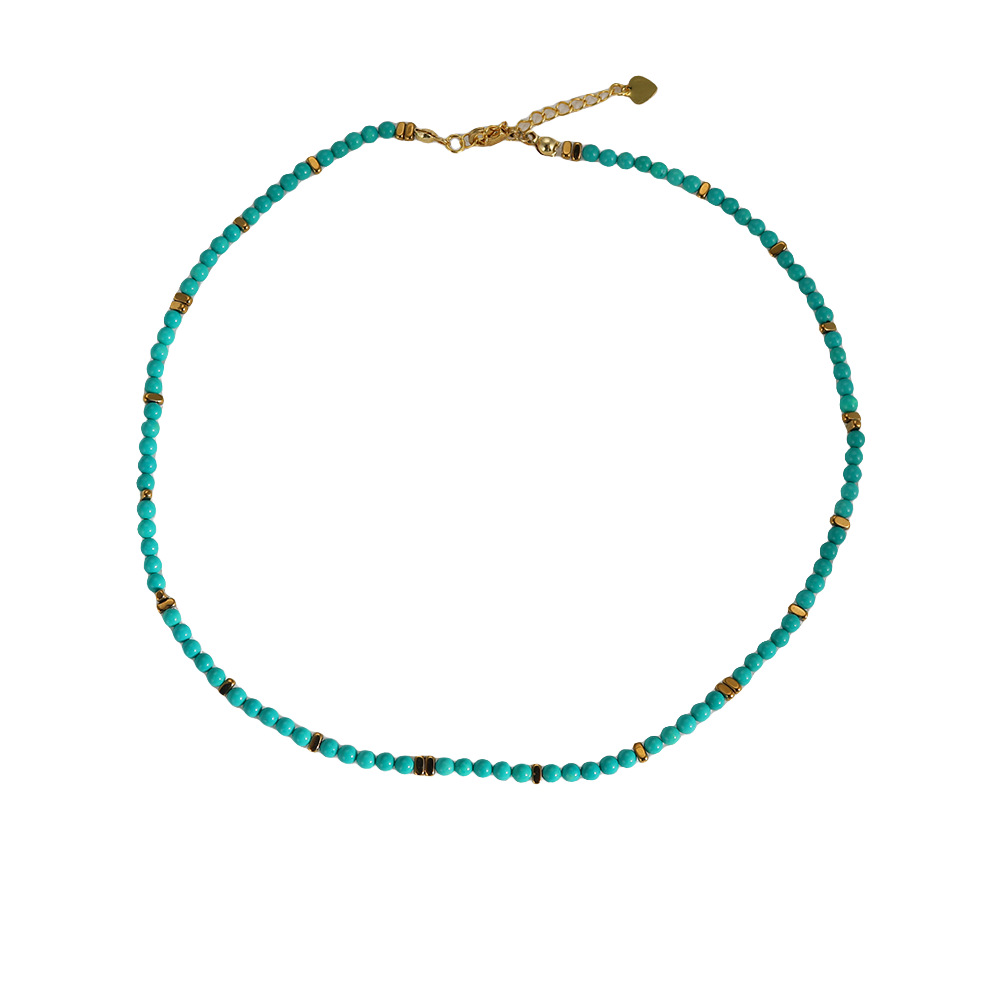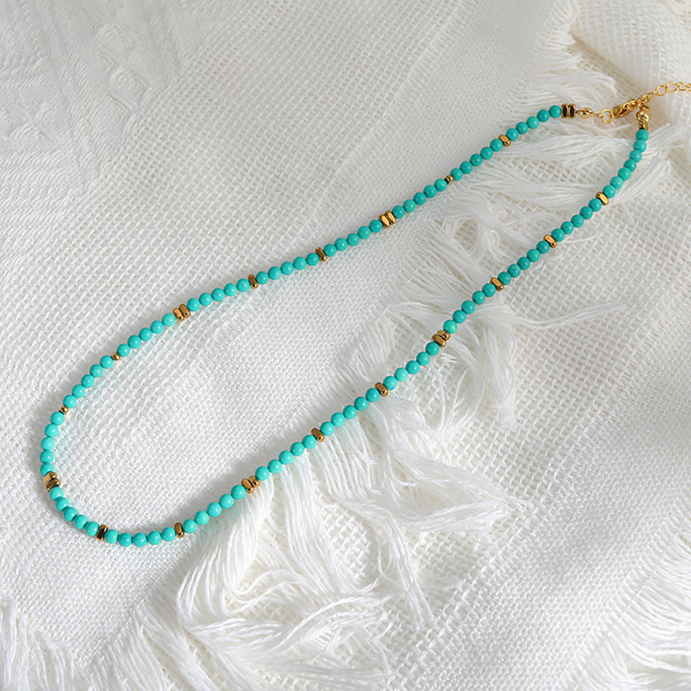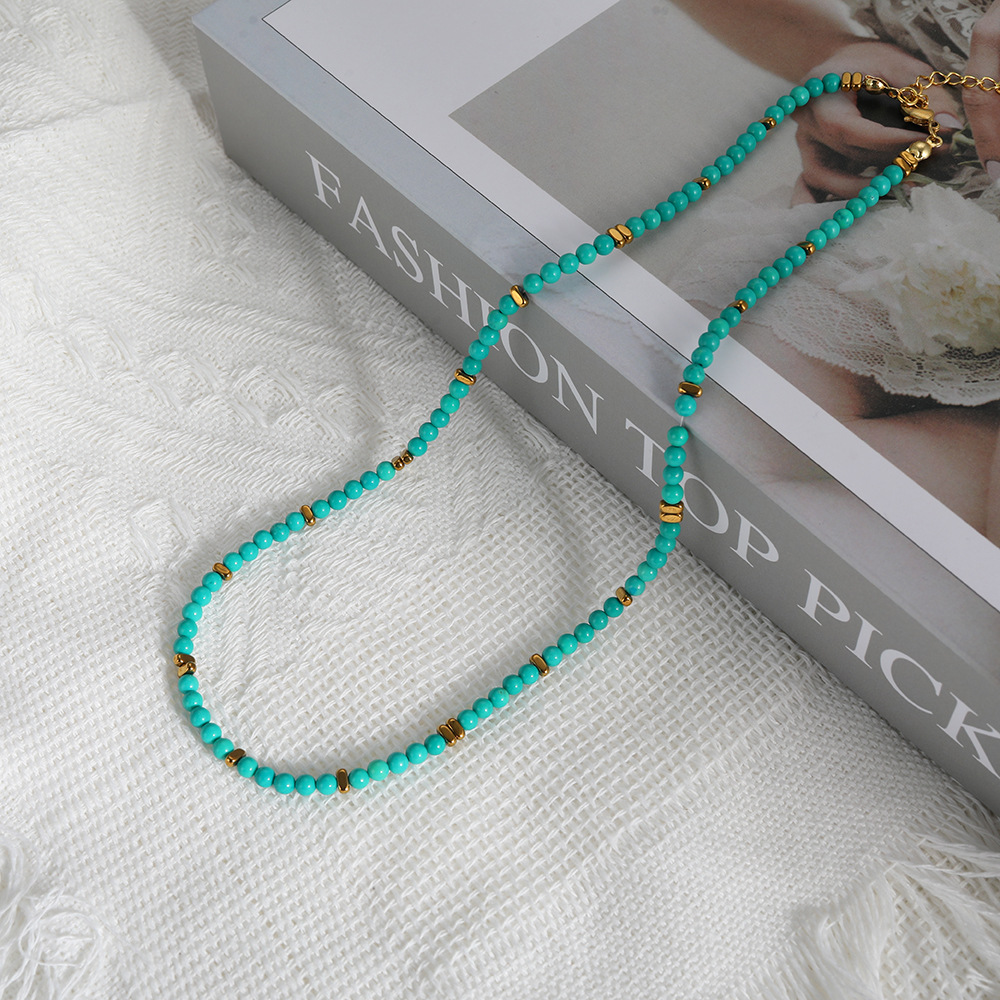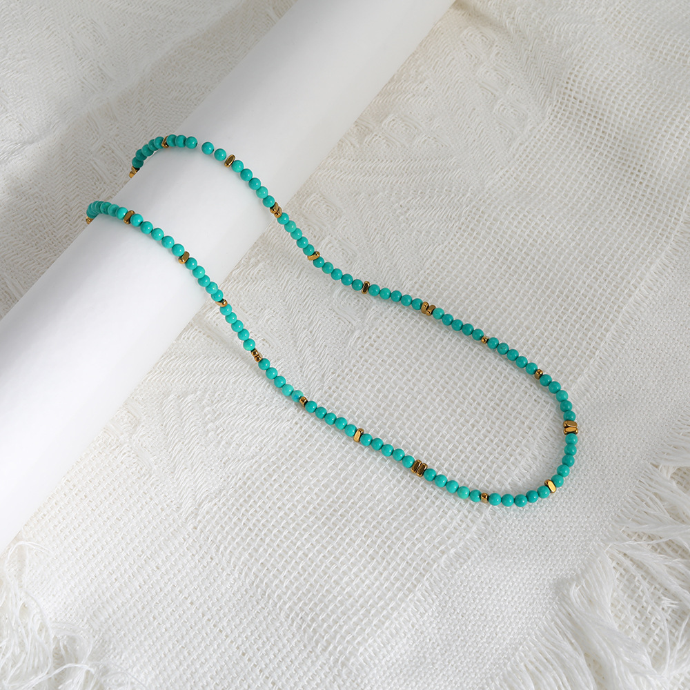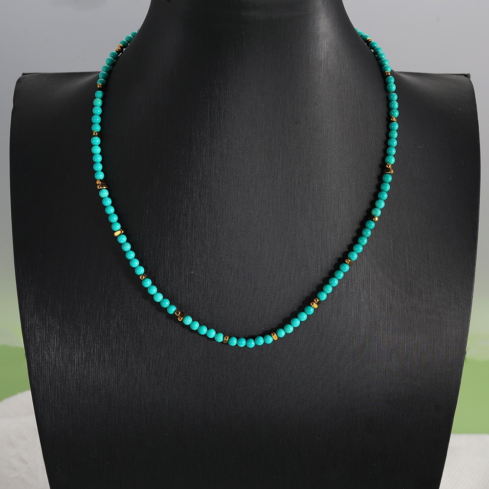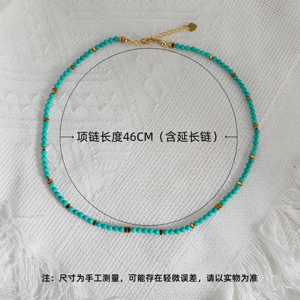 Original New Chinese Style Natural Turquoise Necklace Women's Handmade Beaded High-grade Simple All-match Woolen Chain Necklace Chain Jewelry