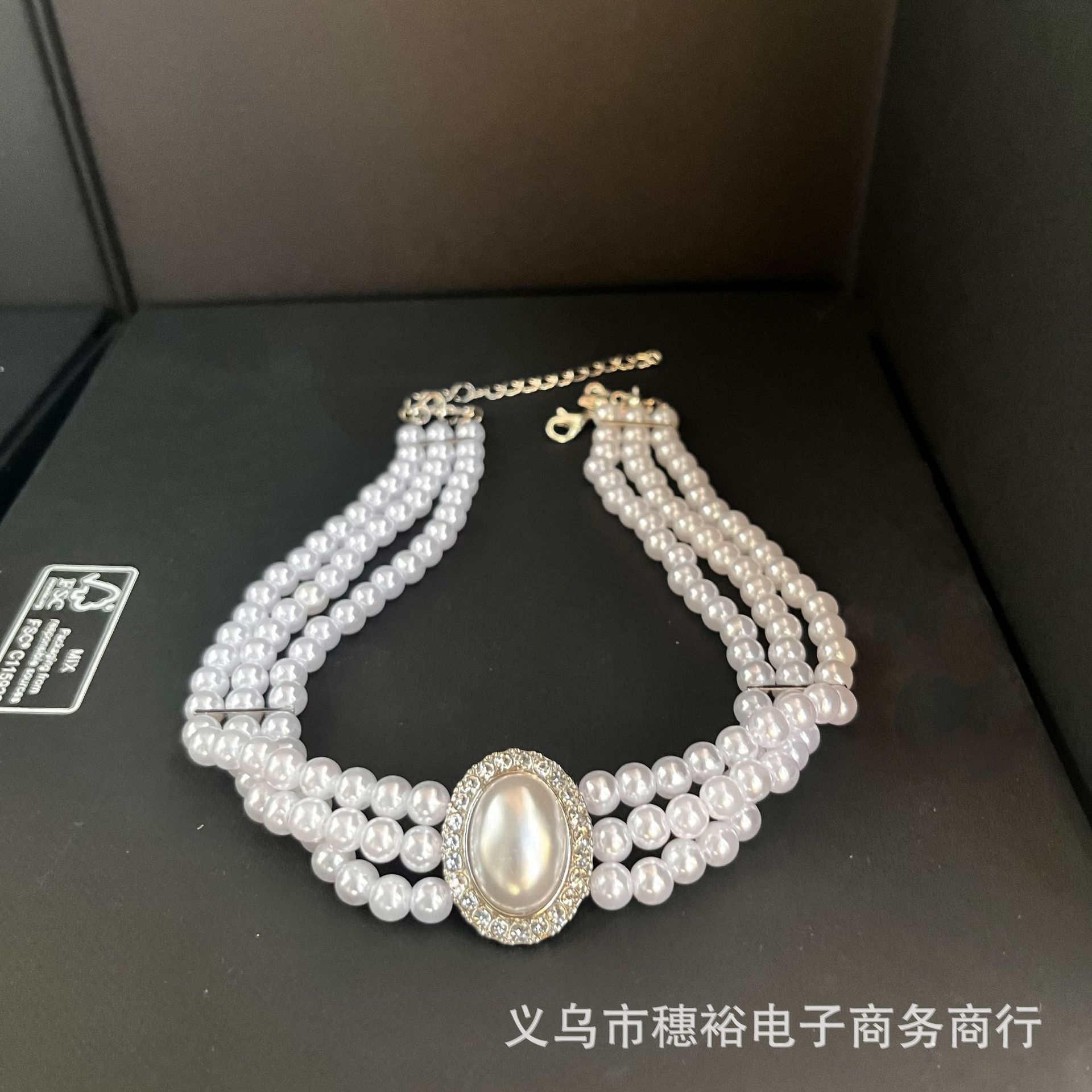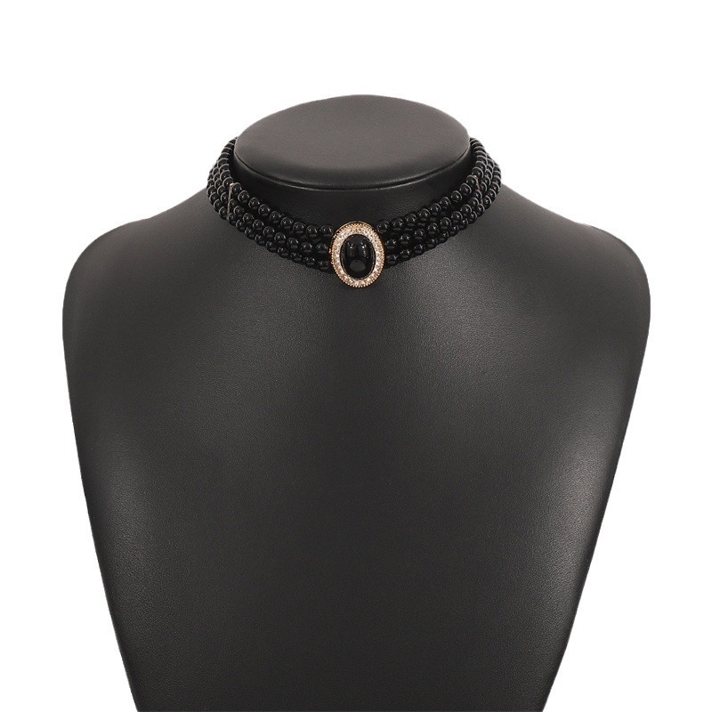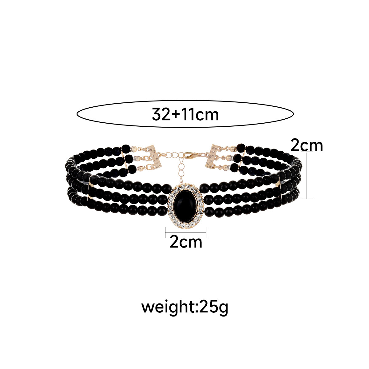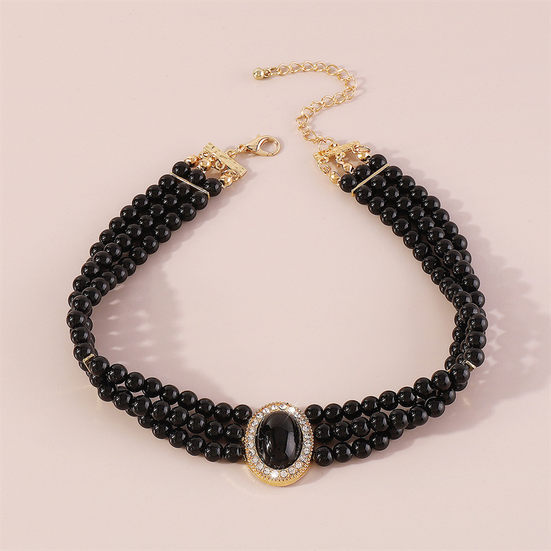 European and American Cross-border Black Multi-layer Pearl Necklace Retro Niche Court Elegant Chain Women Choker Clavicle Chain Women