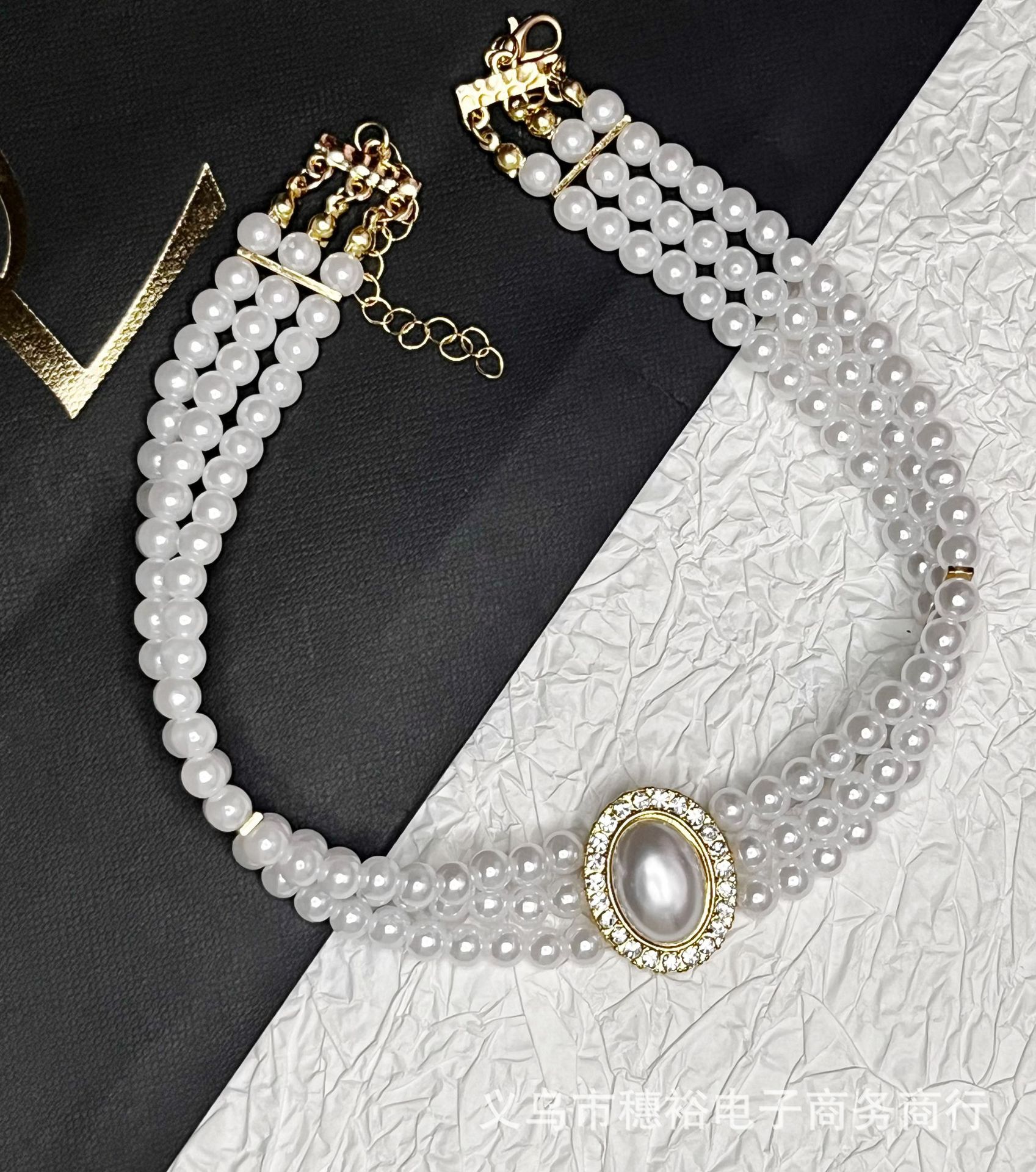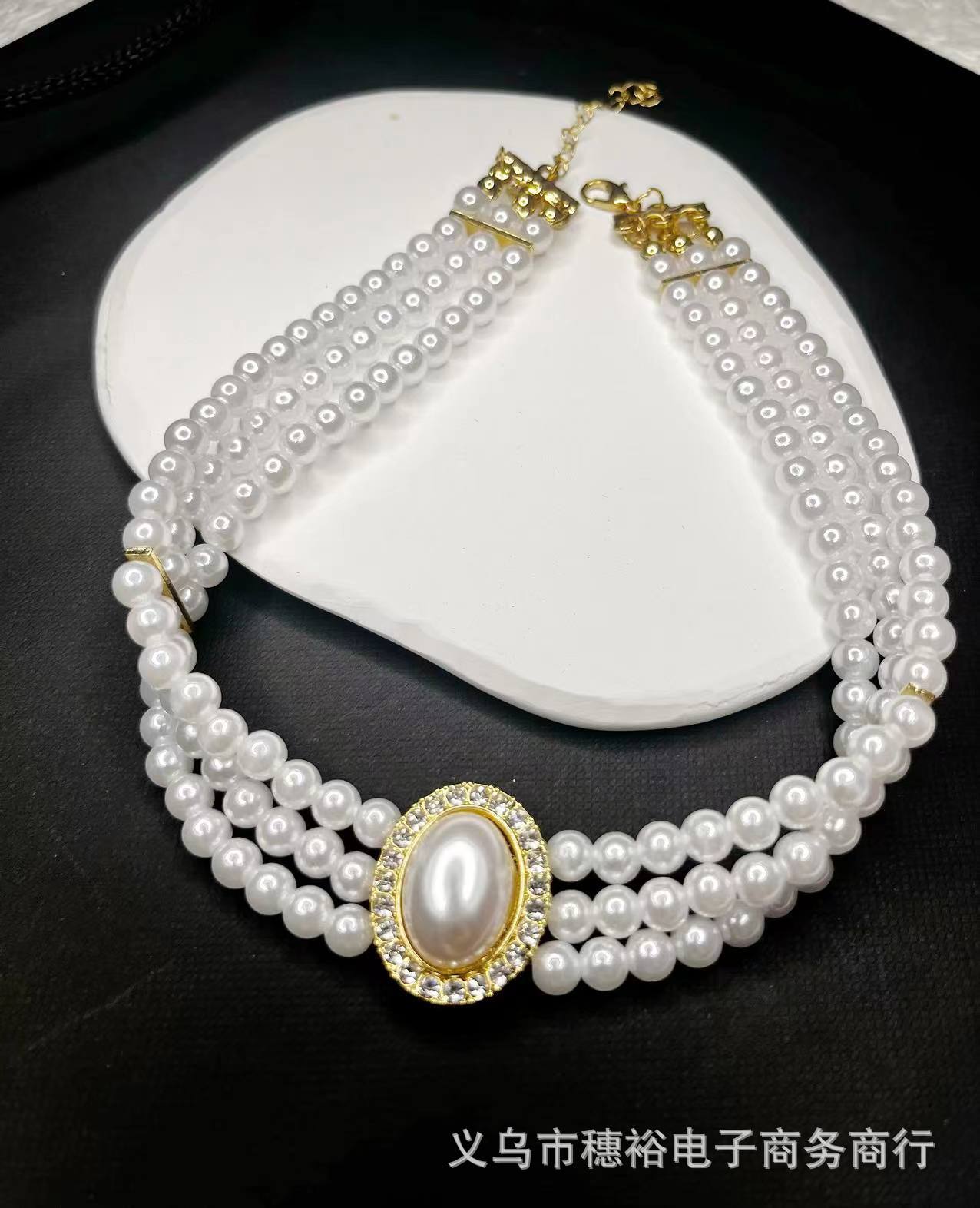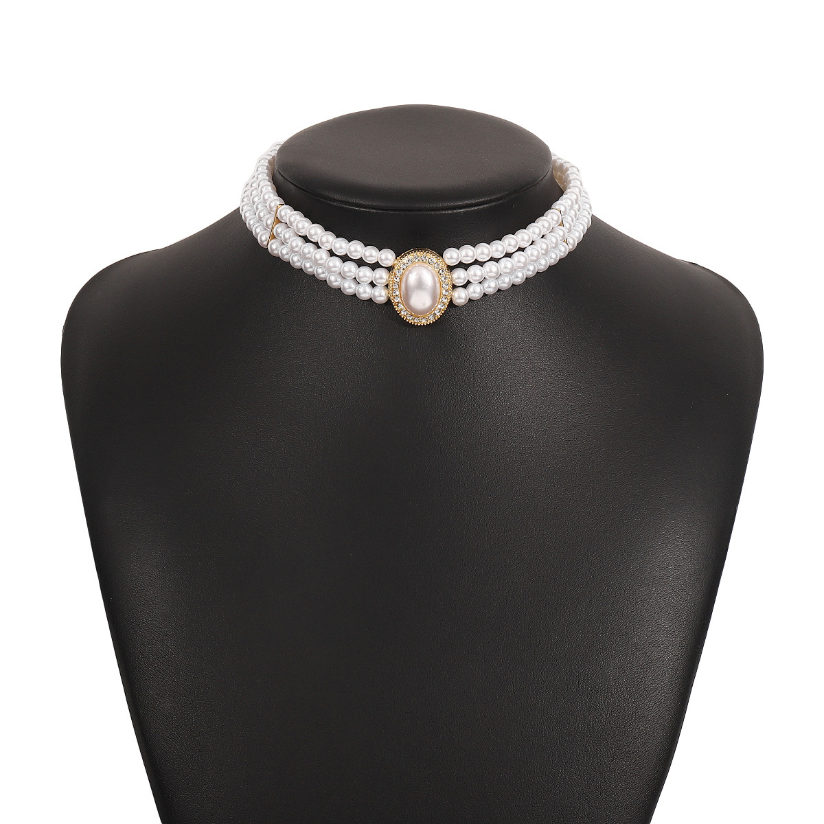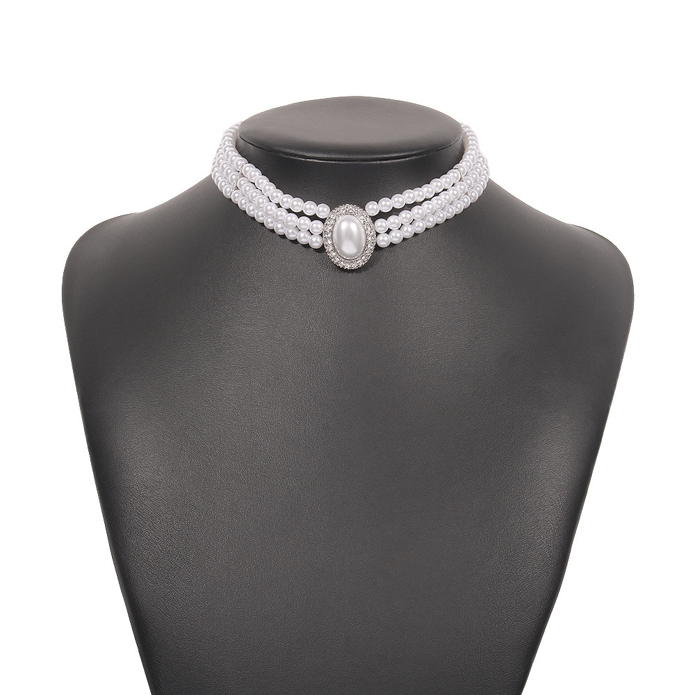 European and American Cross-border Black Multi-layer Pearl Necklace Retro Niche Court Elegant Chain Women Choker Clavicle Chain Women