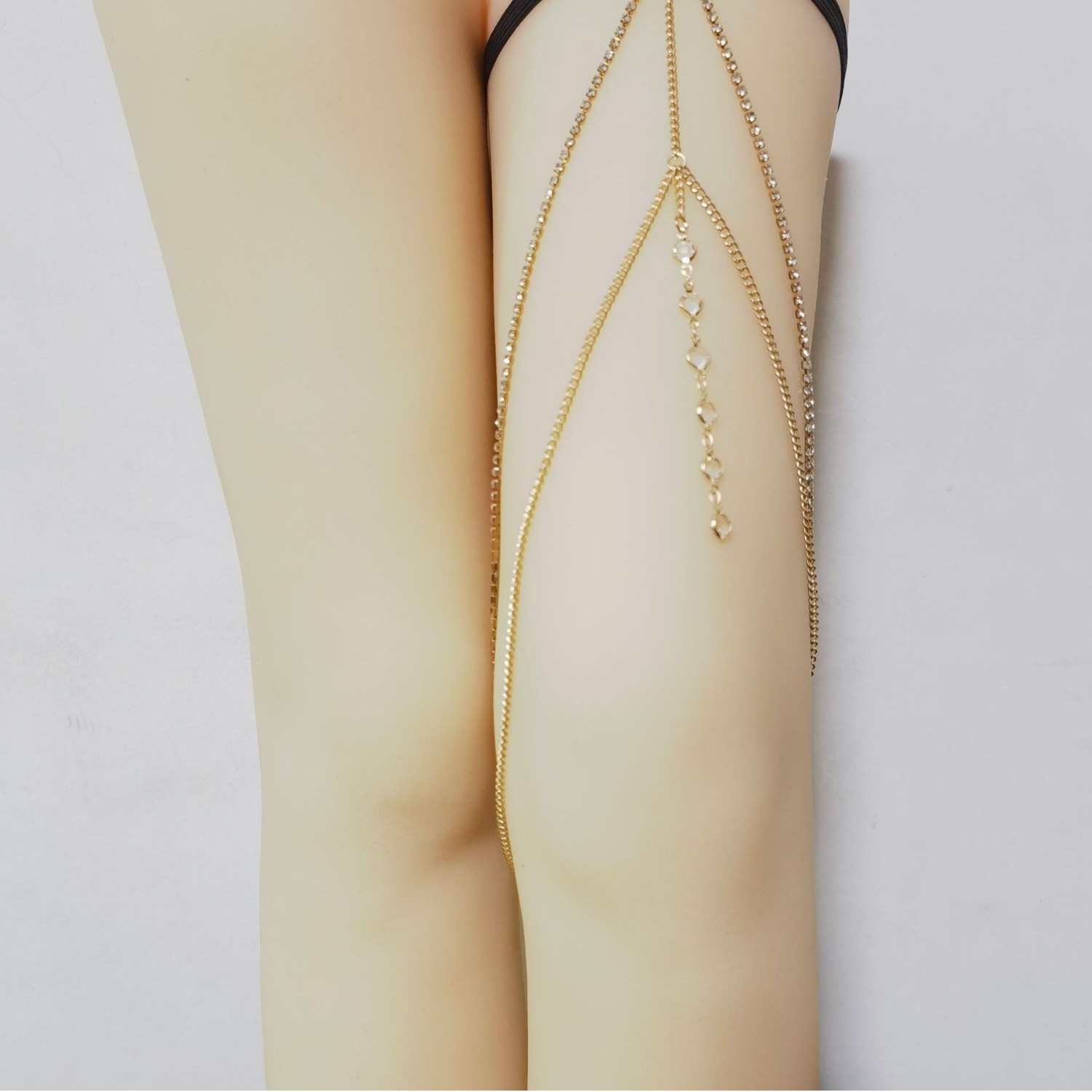 Europe and the United States cross-border jewelry sexy flash diamond elastic belt thigh chain women's personality sweet cool rhinestone chain beach leg ornaments