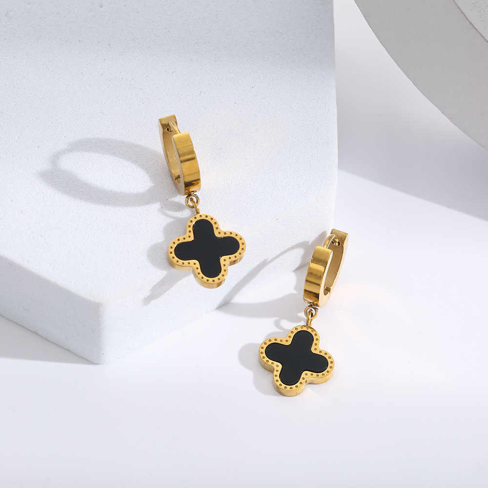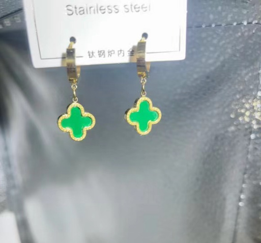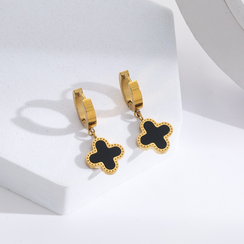 Korean Style Titanium Steel Short Ear Buckle Lucky Four-leaf Clover Earrings Women's All-match Girl's Simple Light Luxury Golden Edge Earrings
