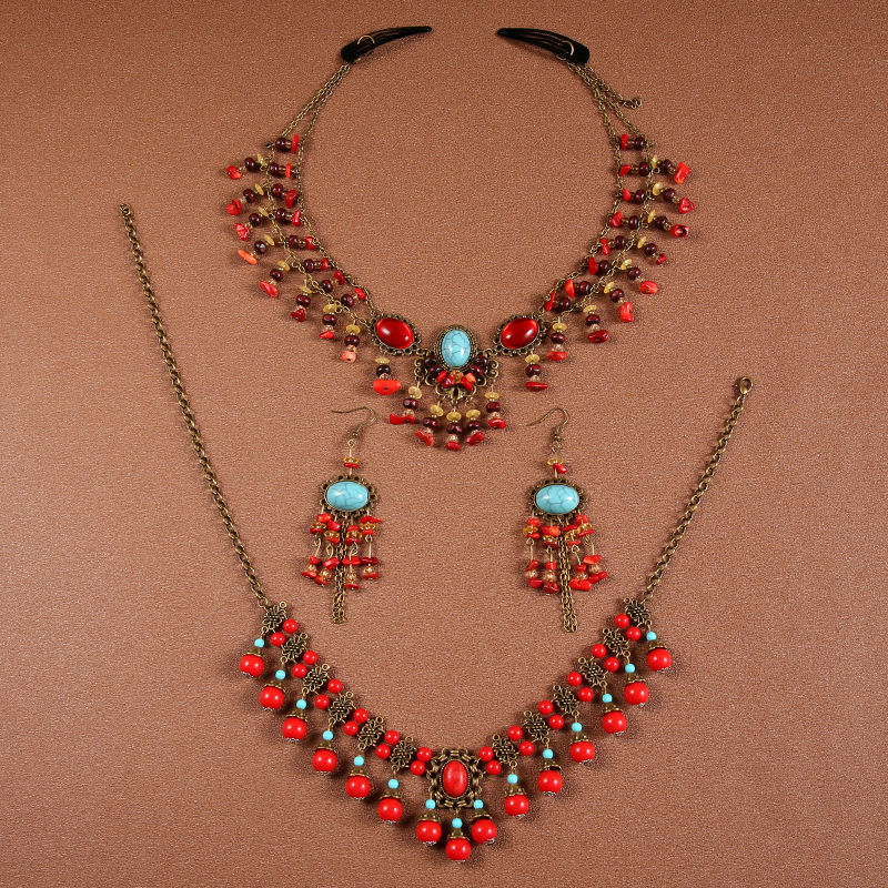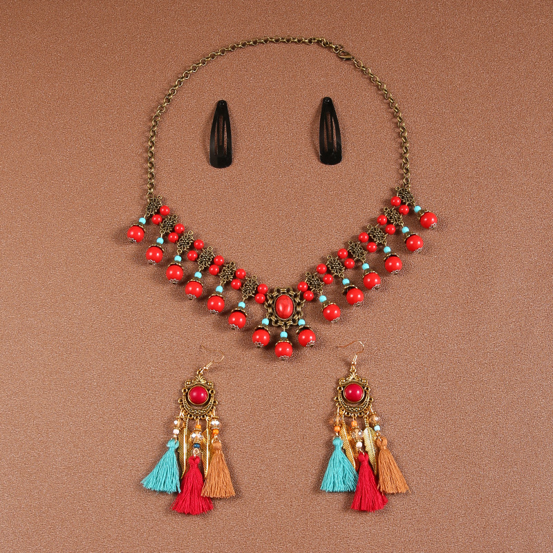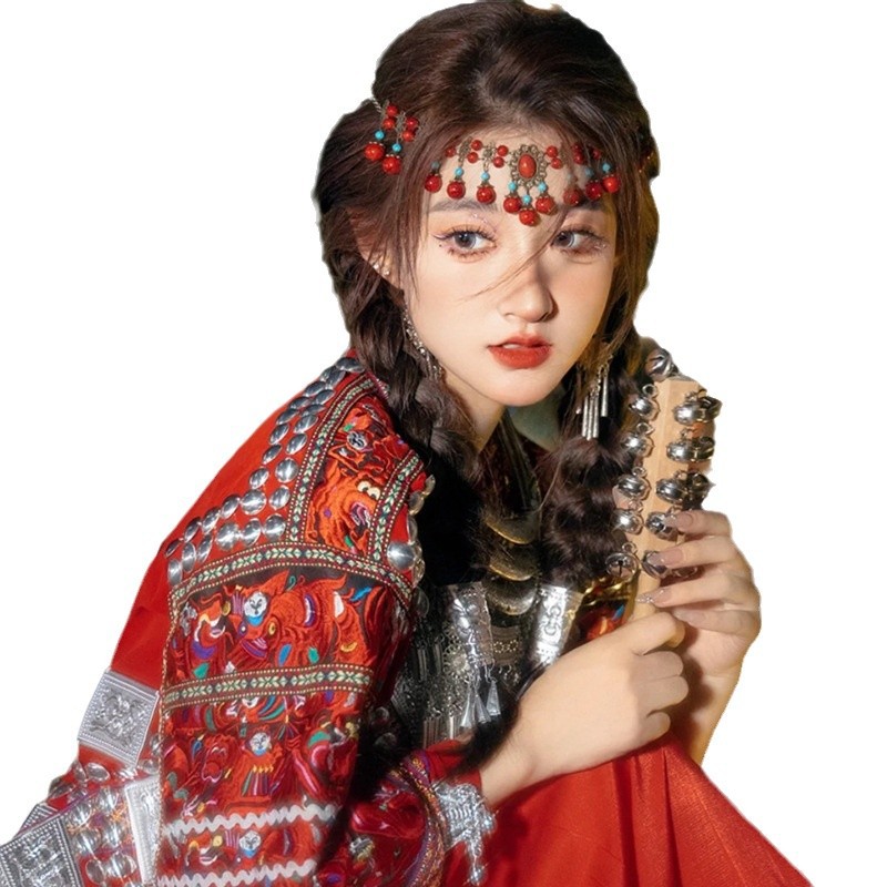Western exotic style forehead chain headdress Yunnan travel photography Chinese clothing tassel eardrop eyebrow pendant ethnic style necklace antique