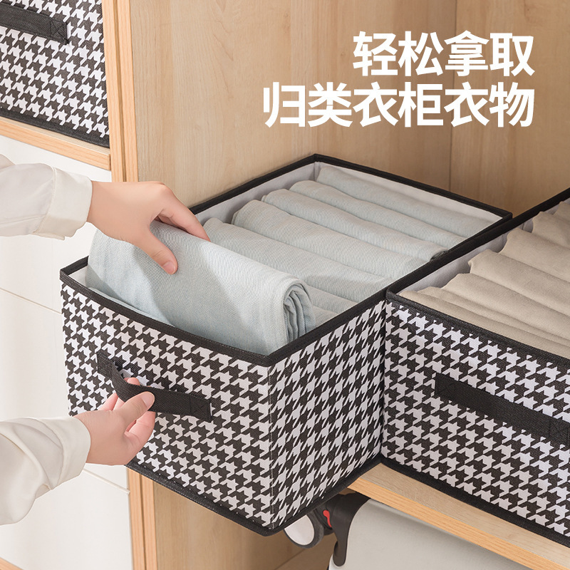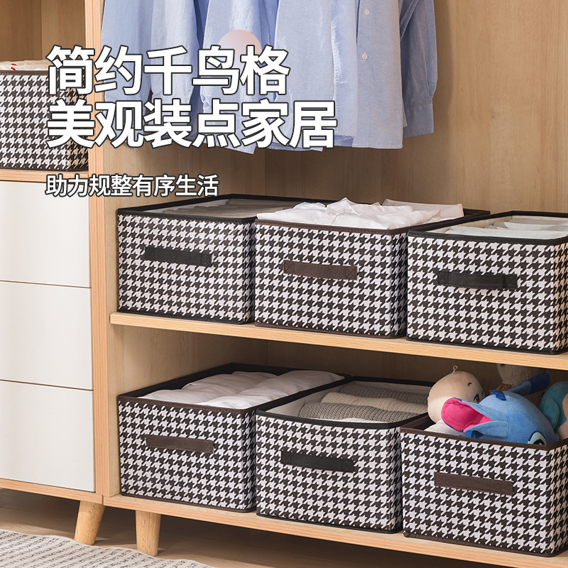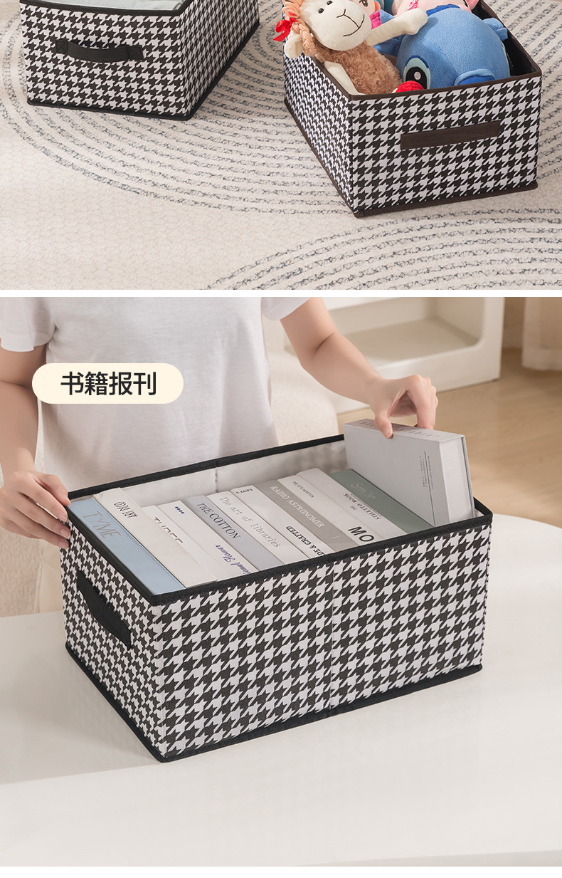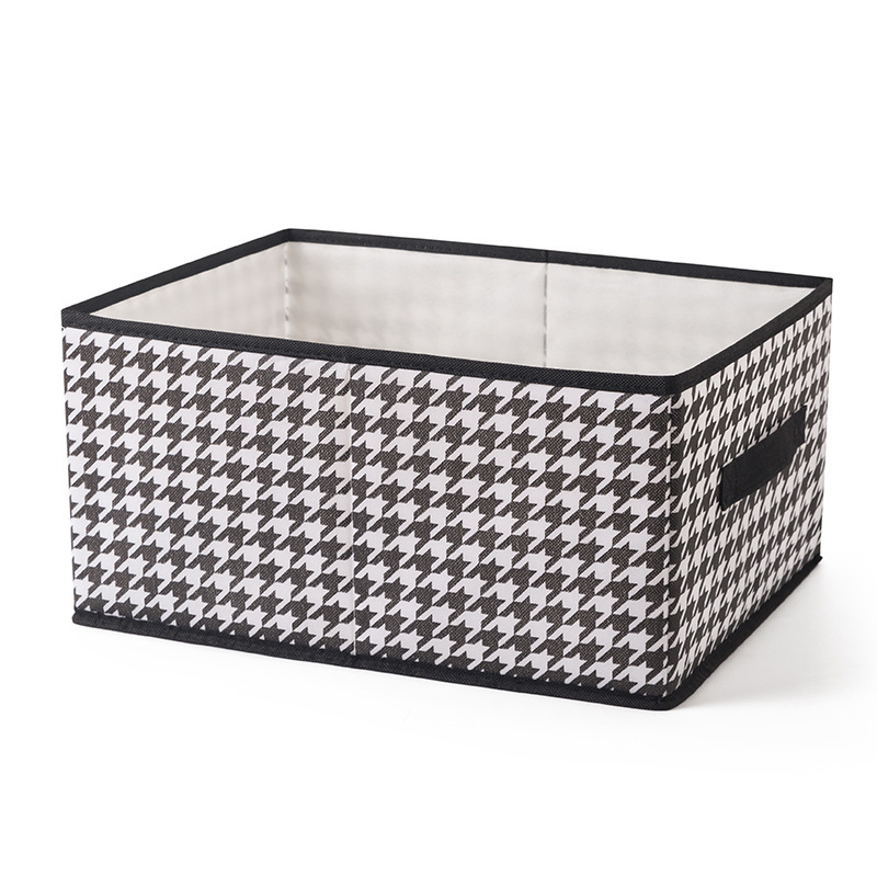 Houndstooth Pattern Lidless Storage Box for Clothes and Toys, Foldable Storage Bin, Miscellaneous Organizer Box, Wardrobe Storage, Portable Storage