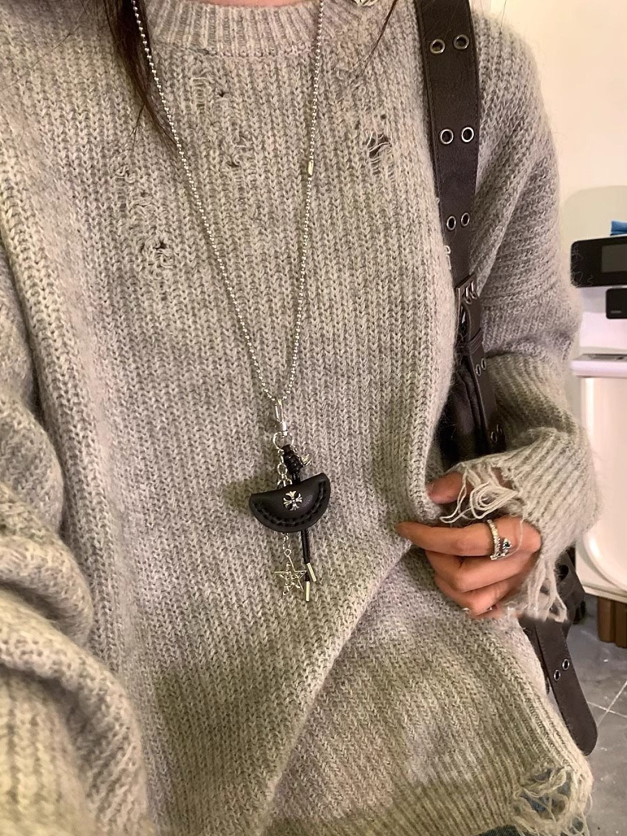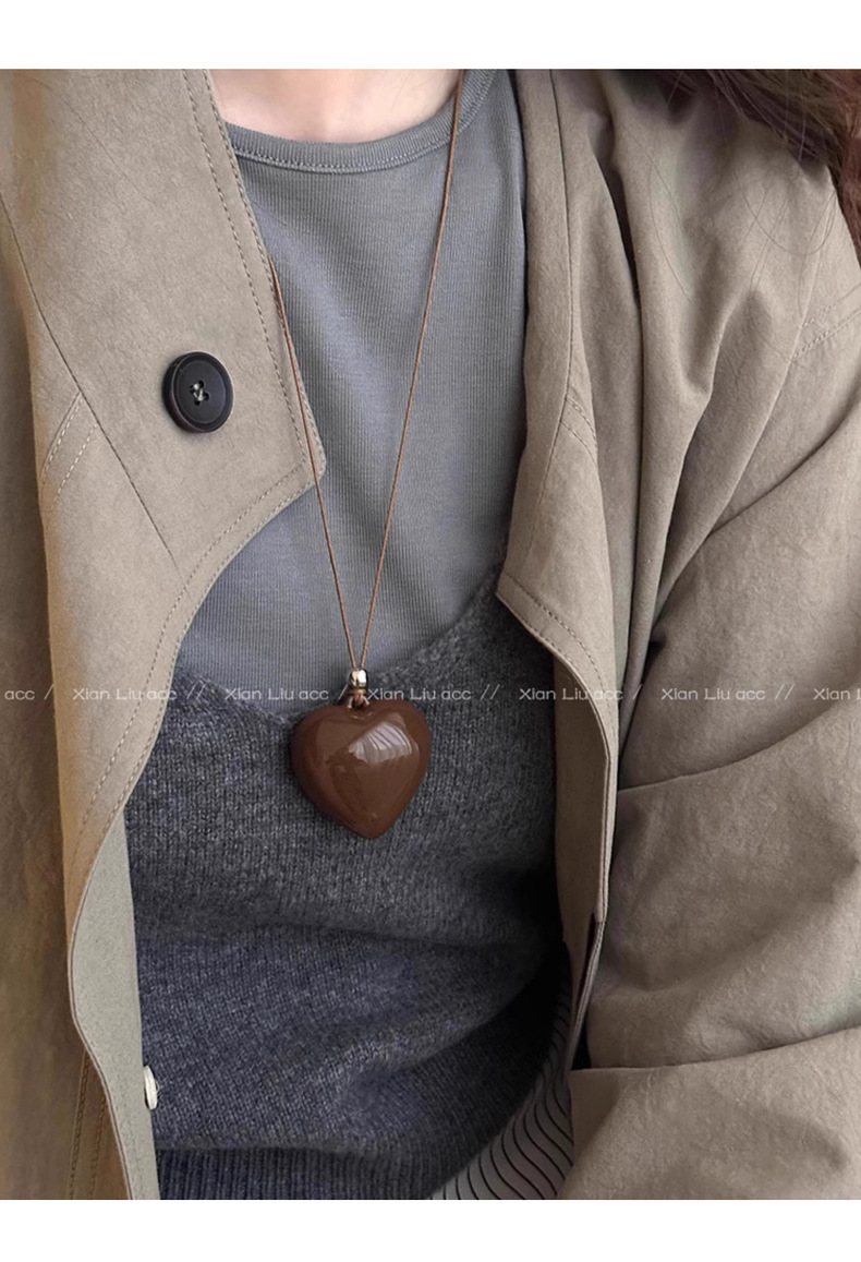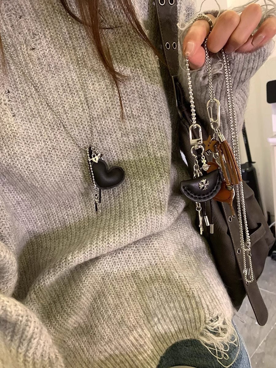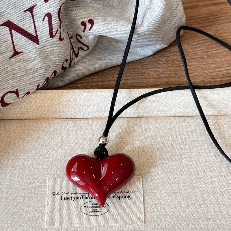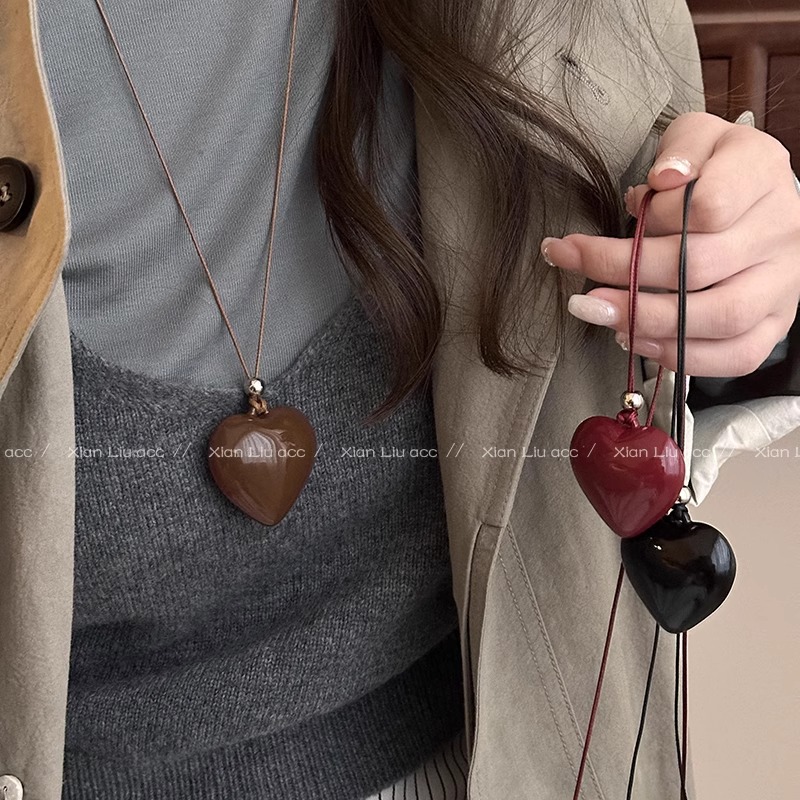 Korean Ins Necklace Women's Maillard Stereo Love Long Woolen Chain Niche Design Sense 2025 New Accessories