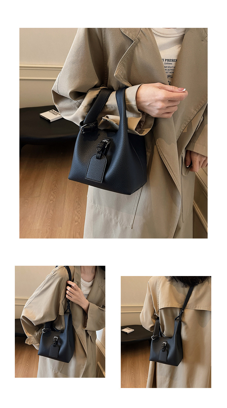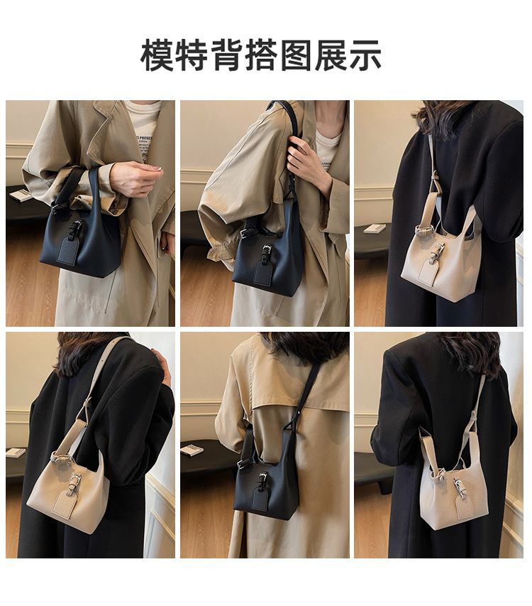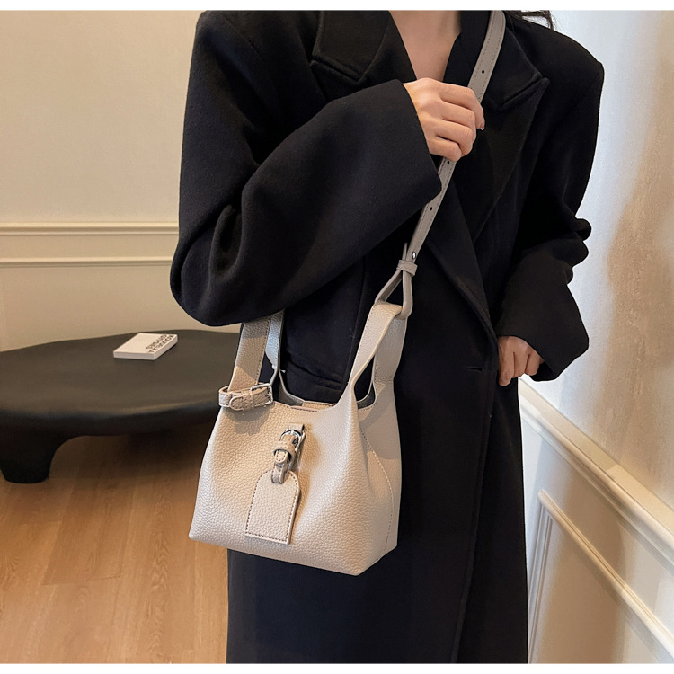 Cross-border 2024 New Autumn Retro Textures Small Bag Women's Fashion Simple Bucket Bag Niche Design Crossbody Bag
