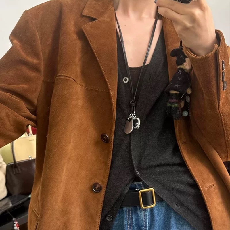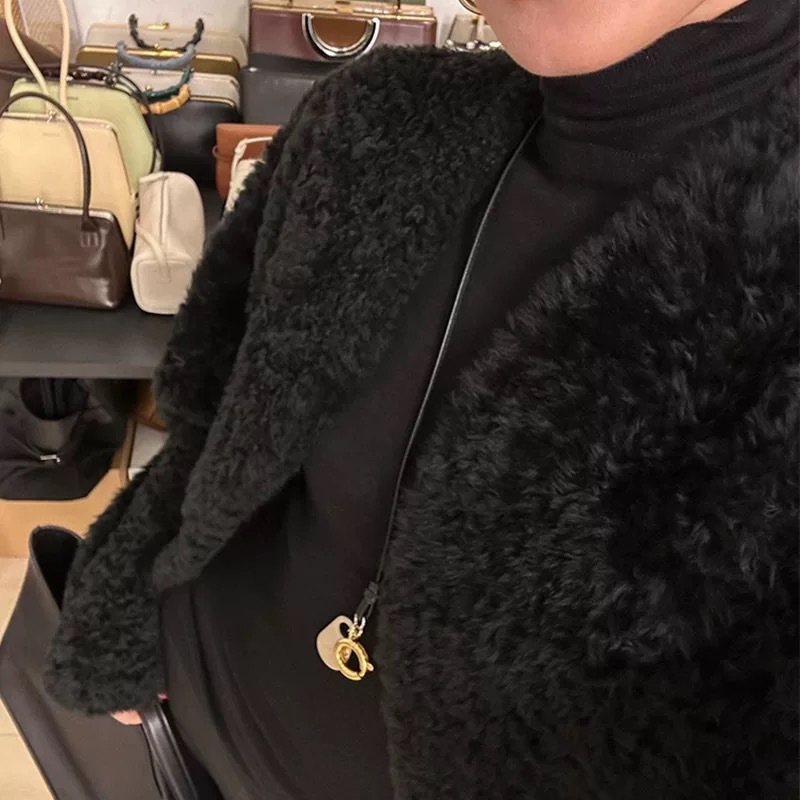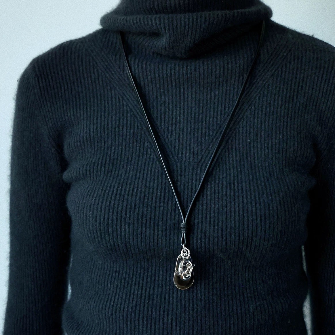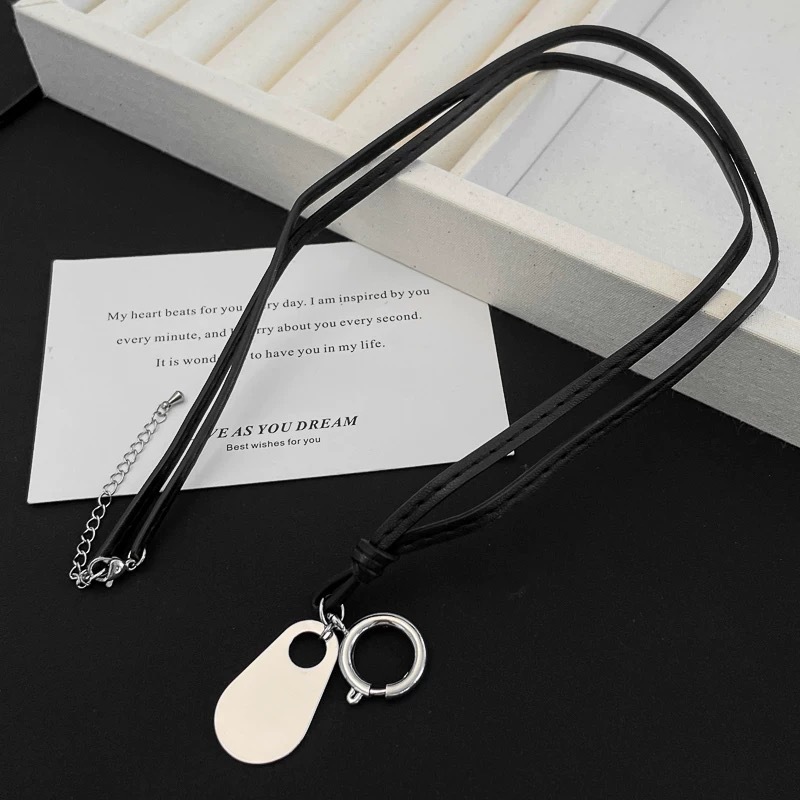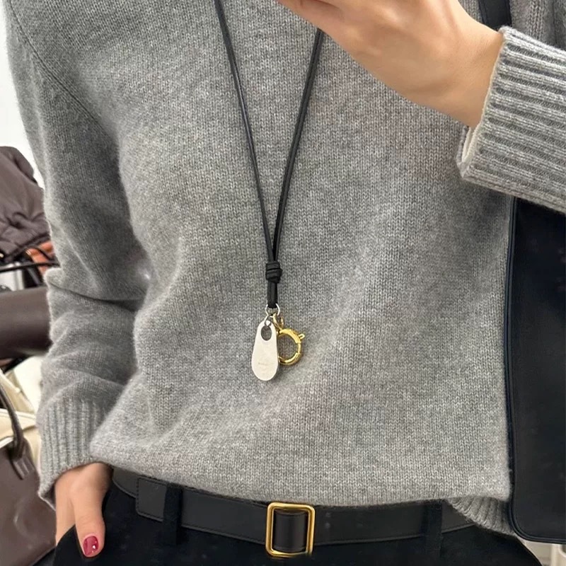 HABI New Gold and Silver Keychain Necklace Autumn and Winter Korean Niche Design Sense Simple Long Black Rope Woolen Chain
