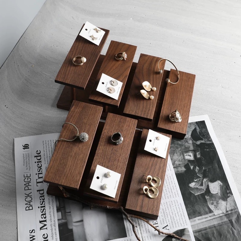 Walnut Jewelry Display Props Jewelry Tray Earrings Necklace Bracelet Ladder Display Stand Jewelry Solid Wood Base