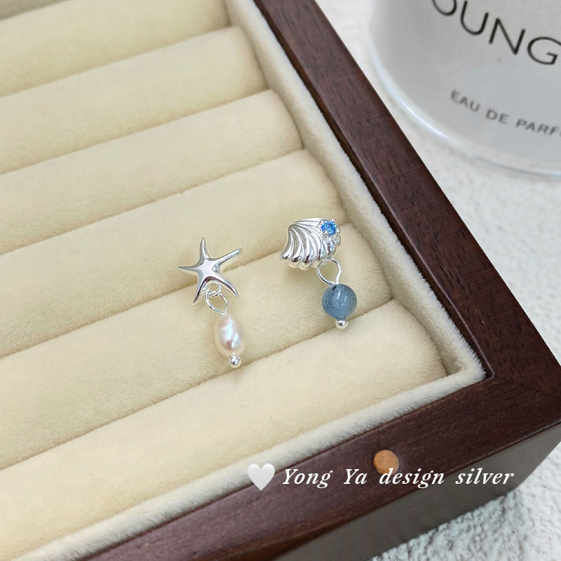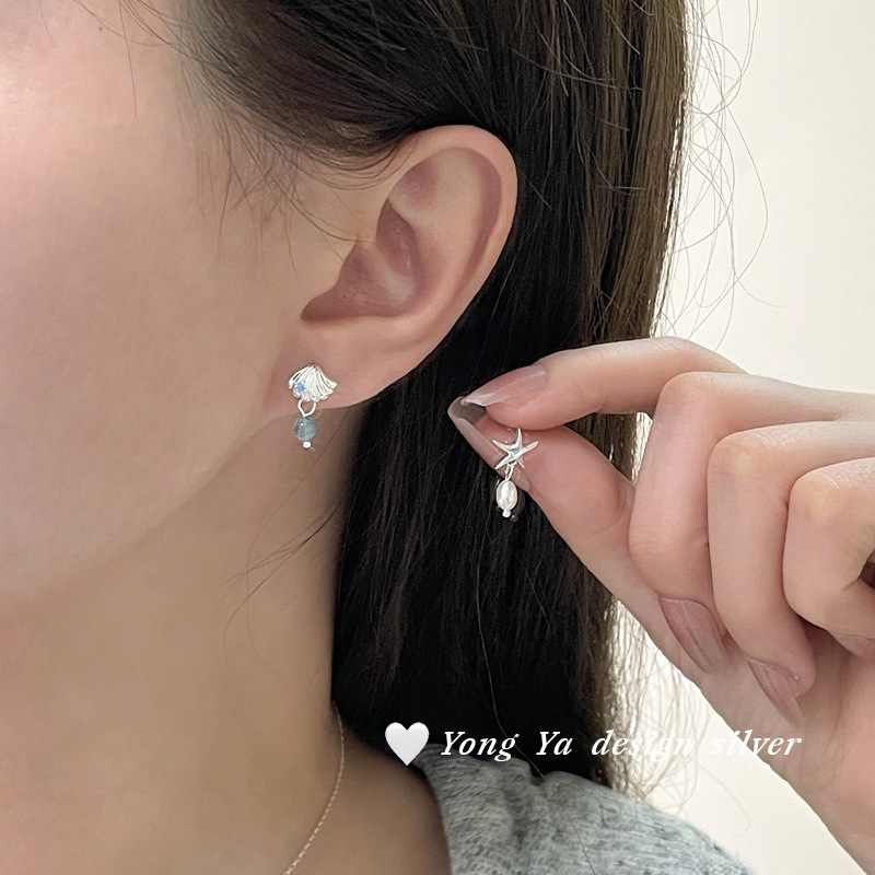 Color: S925 sterling silver starfish shell earrings--silver