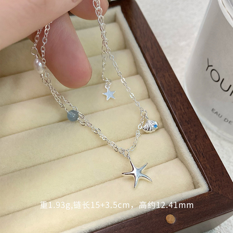 Color: S925 sterling silver starfish shell bracelet--silver