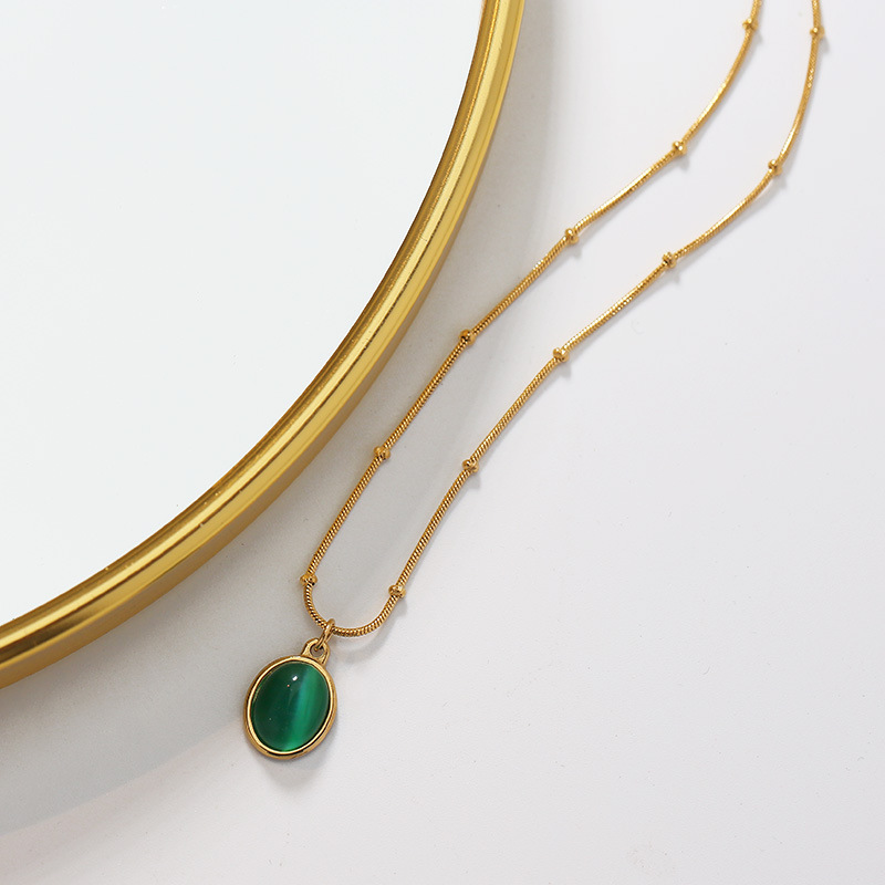Niche Design Titanium Steel Ins Style Pendant Stainless Steel 18K Gold Plated Necklace Female Fritillaria Zircon Emerald Clavicle Chain