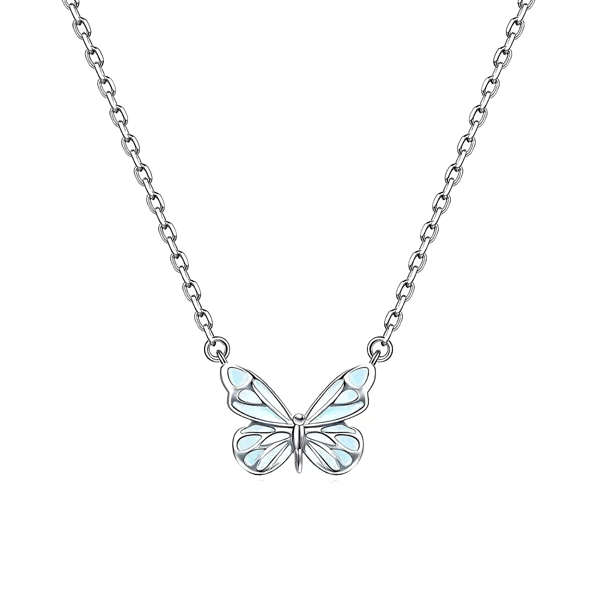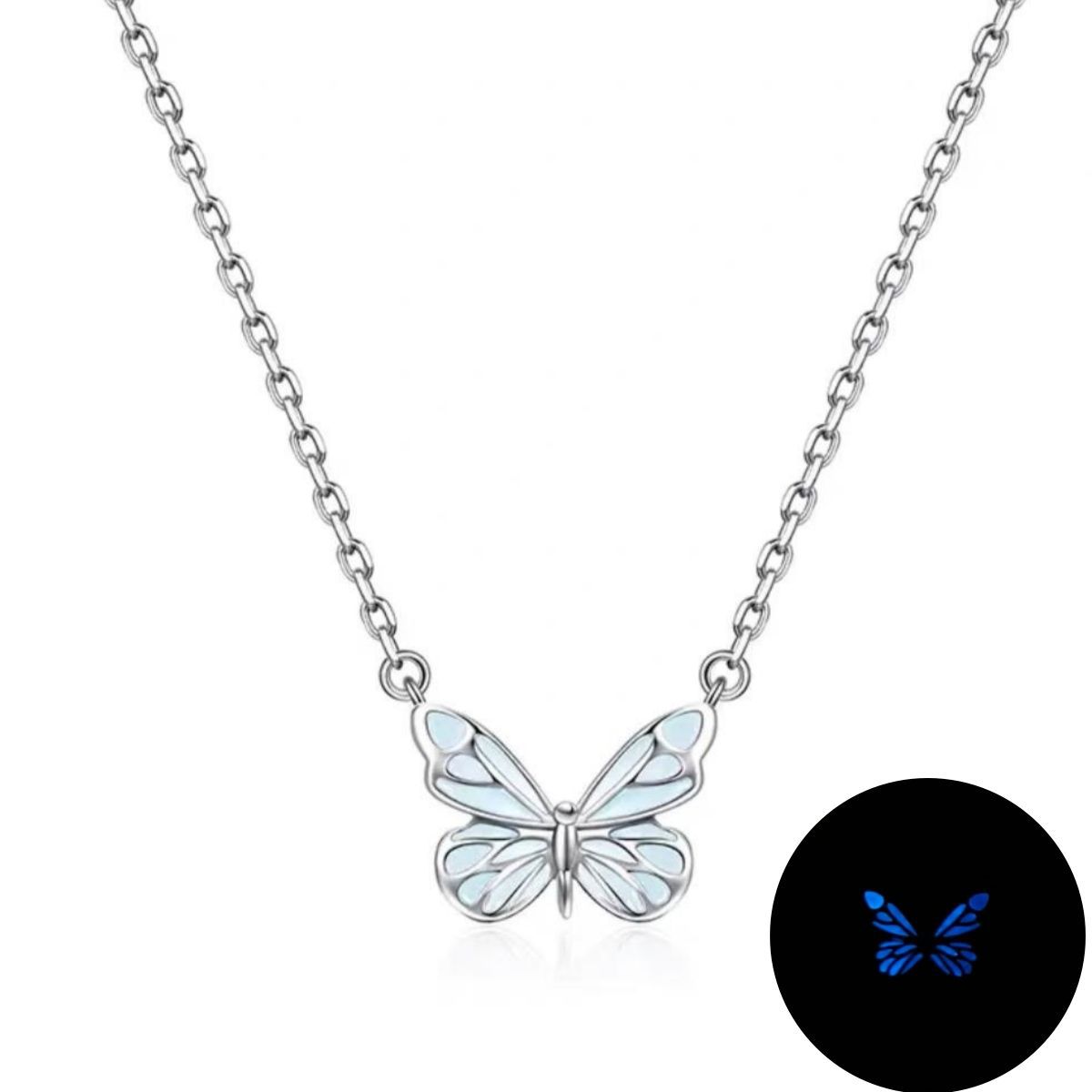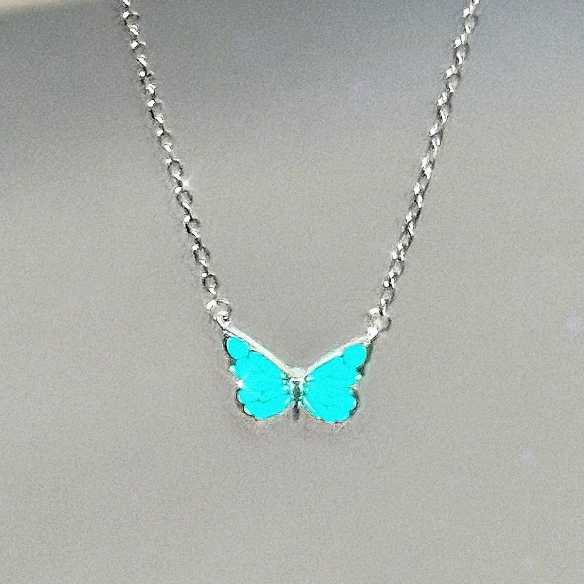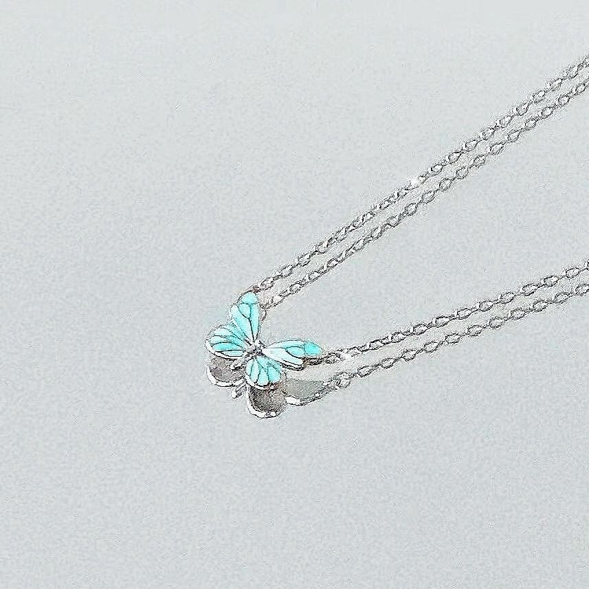 Butterfly Light Necklace Women's Blue Smart Fluorescent Butterfly Pendant All-match High-end Temperament Light Luxury Aurora Clavicle Chain