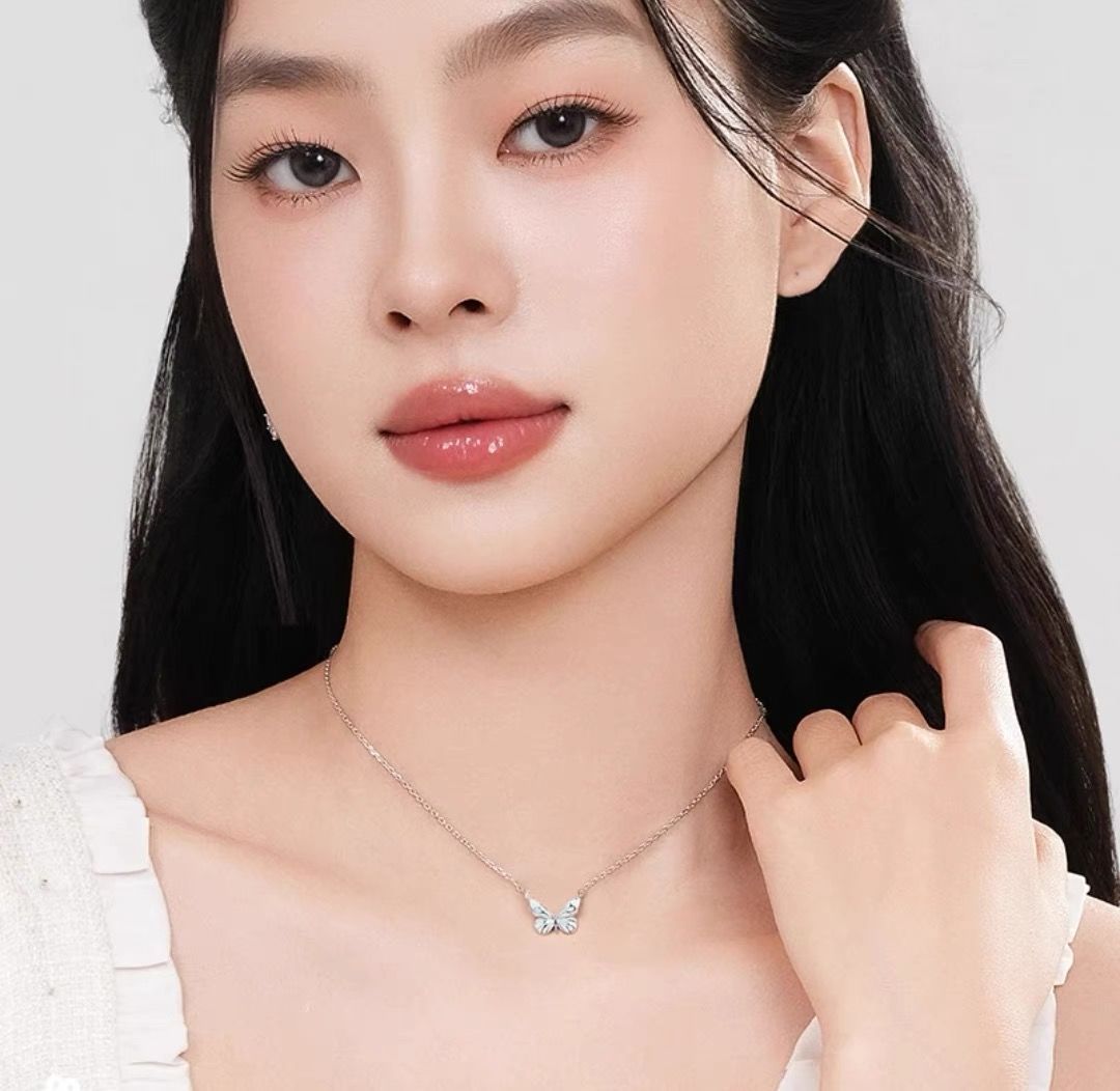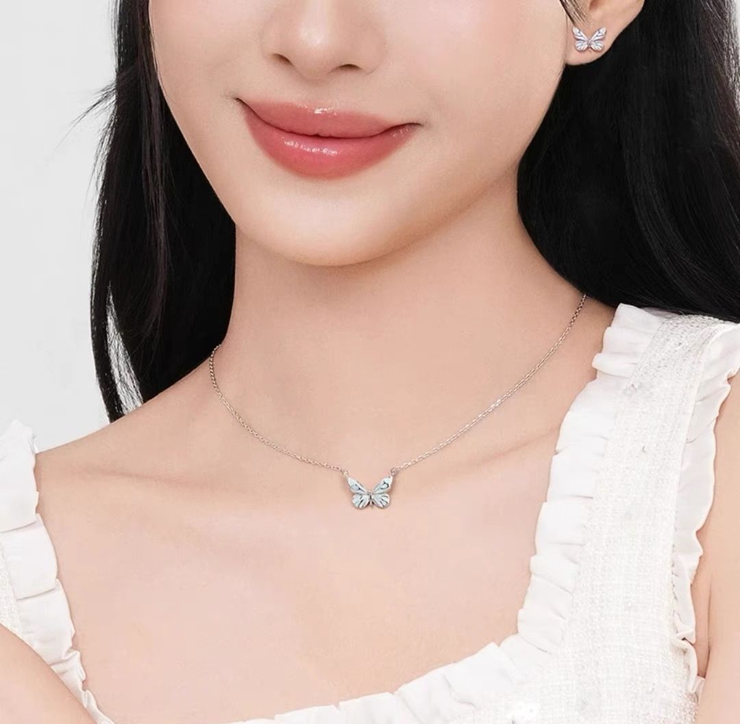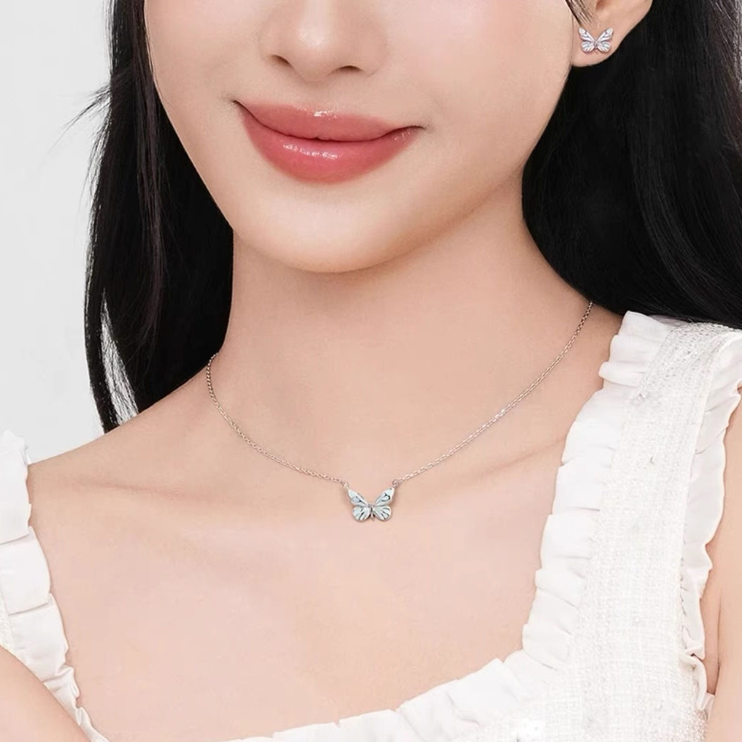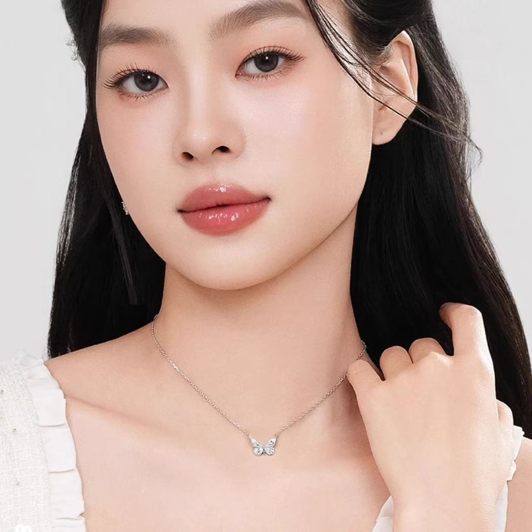 Butterfly Light Necklace Women's Blue Smart Fluorescent Butterfly Pendant All-match High-end Temperament Light Luxury Aurora Clavicle Chain