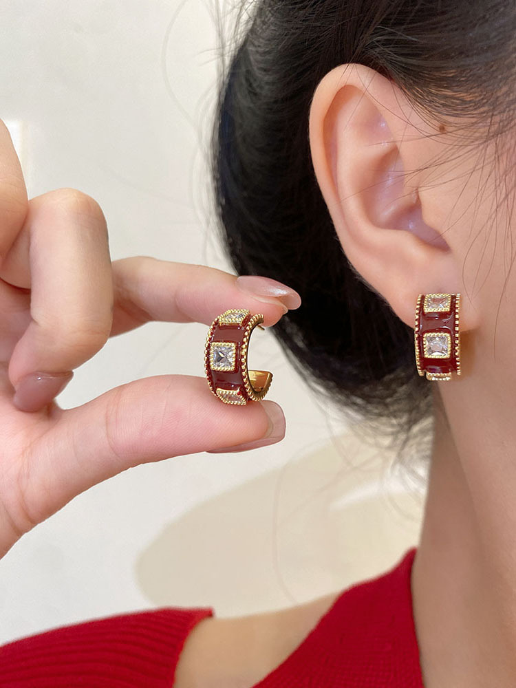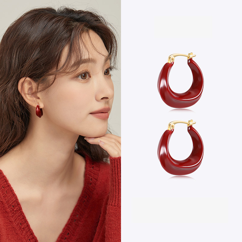Color: 43#Ear buckle-red 14mm (real gold plating)