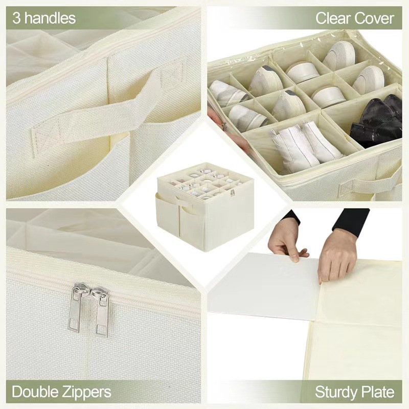 Cross-Border Household Shoe Wardrobe Storage Box Folding Transparent Cover Storage Box Fabric Storage Bedroom Organization Storage Box