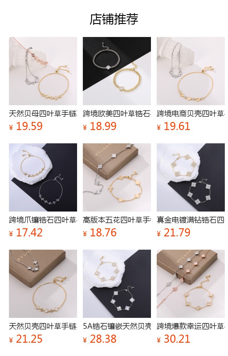 Rhinestone: Shein four-leaf clover old bracelet women's bracelet bracelet jewelry wish temu tiktok hand chain