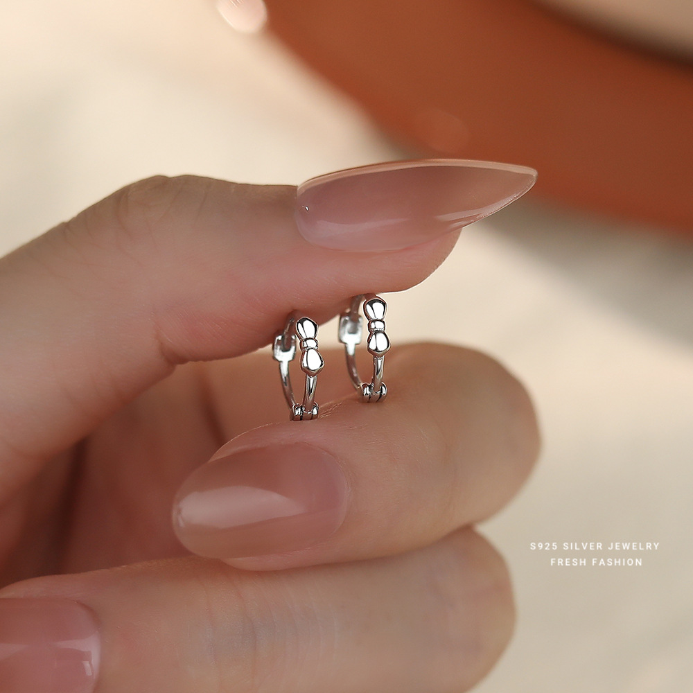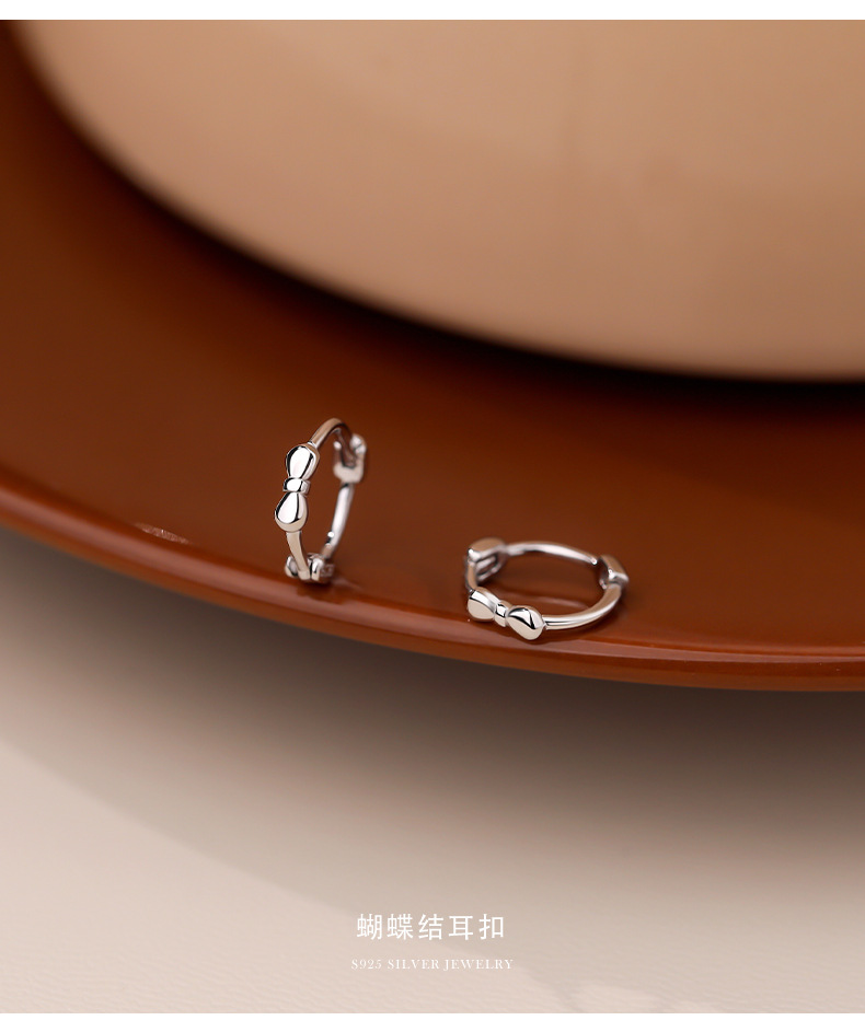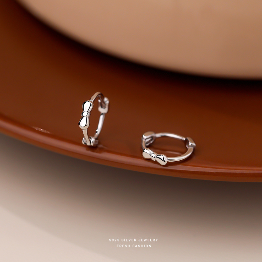 S925 sterling silver sweet bow earrings women's simple light luxury niche design earrings Korean version of all-match earrings wholesale