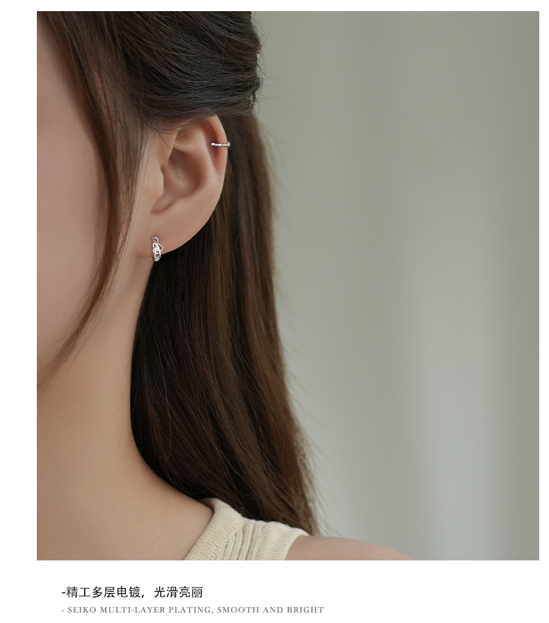云小舒S999足银耳钉女简约四叶草纯银小耳骨钉养耳洞耳饰代发批发