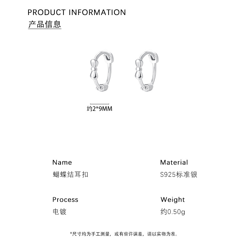 s999足银锆石蝴蝶结耳钉女轻奢高级感气质小众法式精致设计耳饰